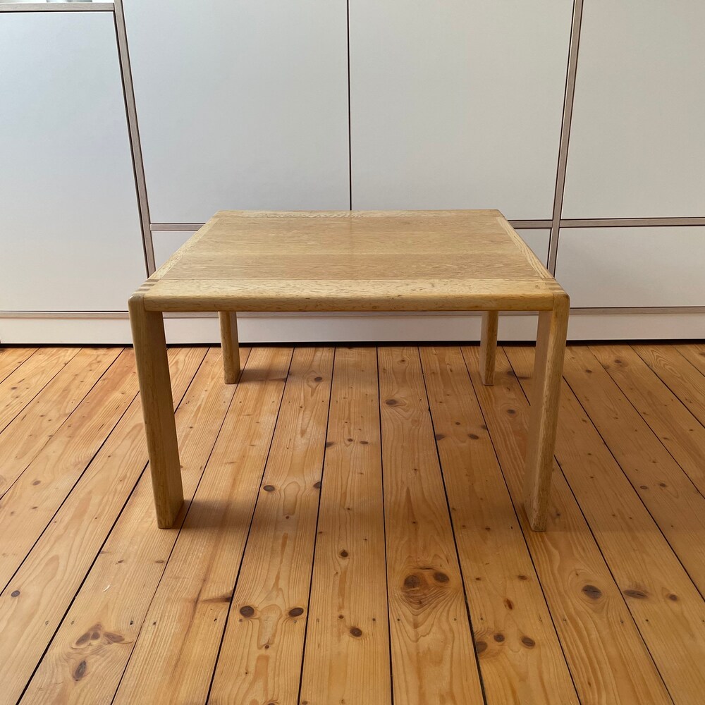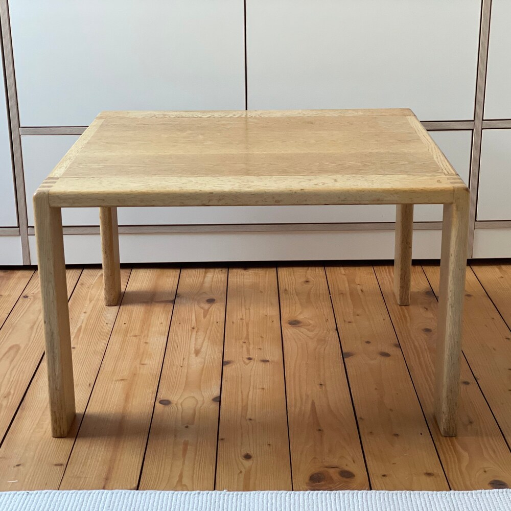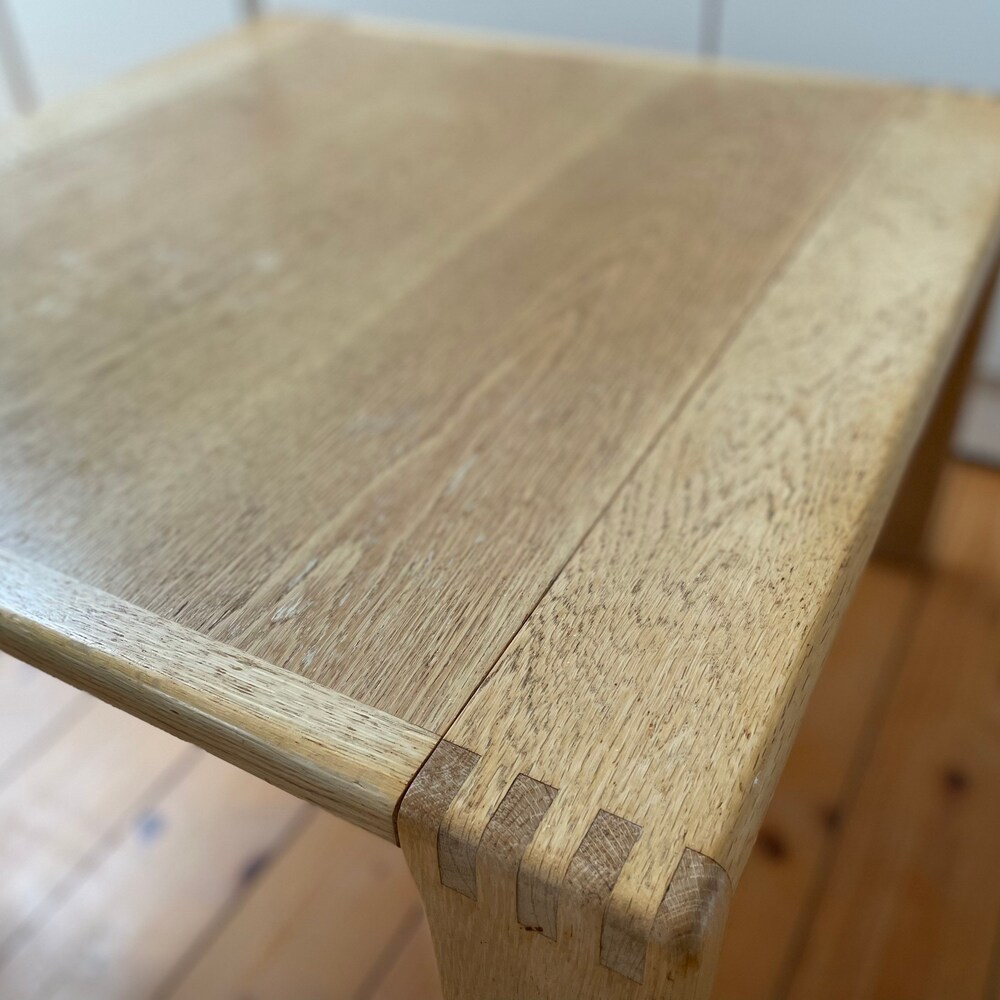 The beautiful table is made of high-quality processed light oak wood. It fits perfectly into a Scandinavian living room and impresses with its factual and beautiful design. It is solid and well preserved.