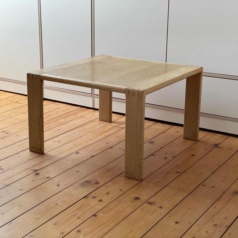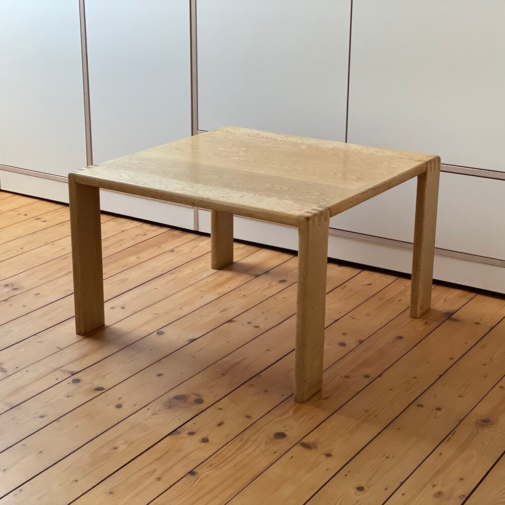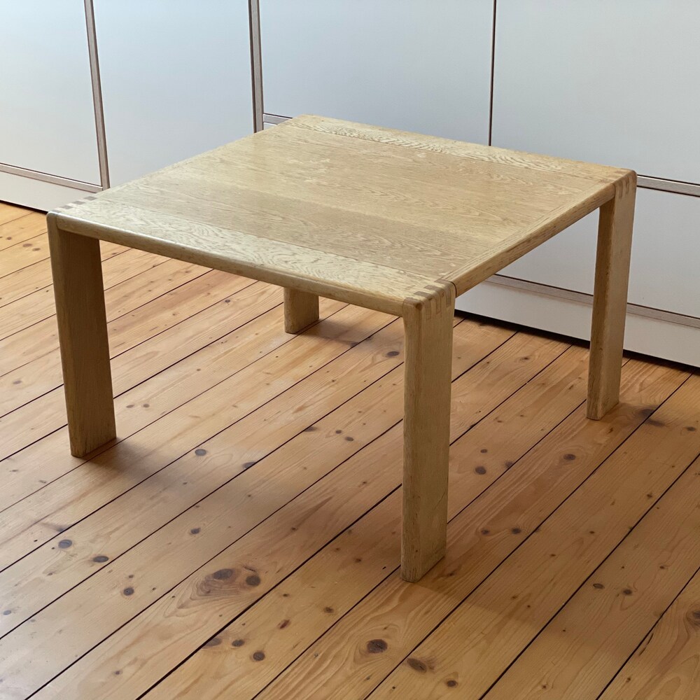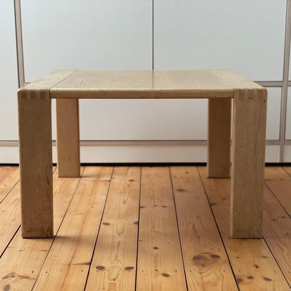 The beautiful table is made of high-quality processed light oak wood. It fits perfectly into a Scandinavian living room and impresses with its factual and beautiful design. It is solid and well preserved.