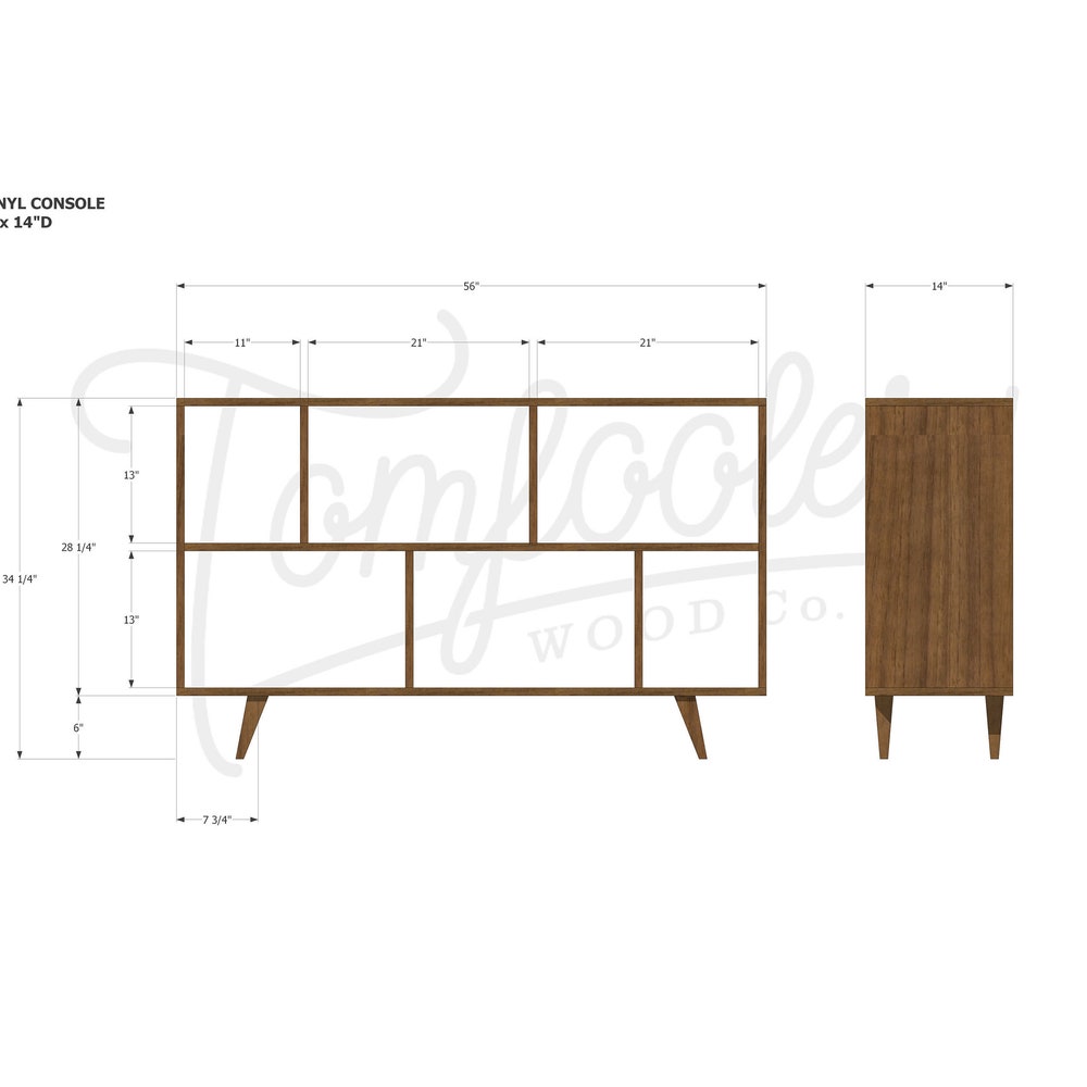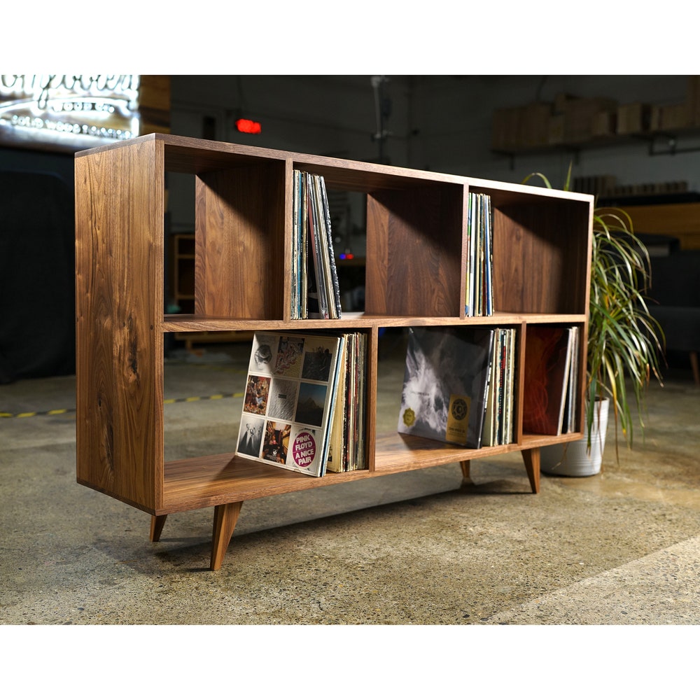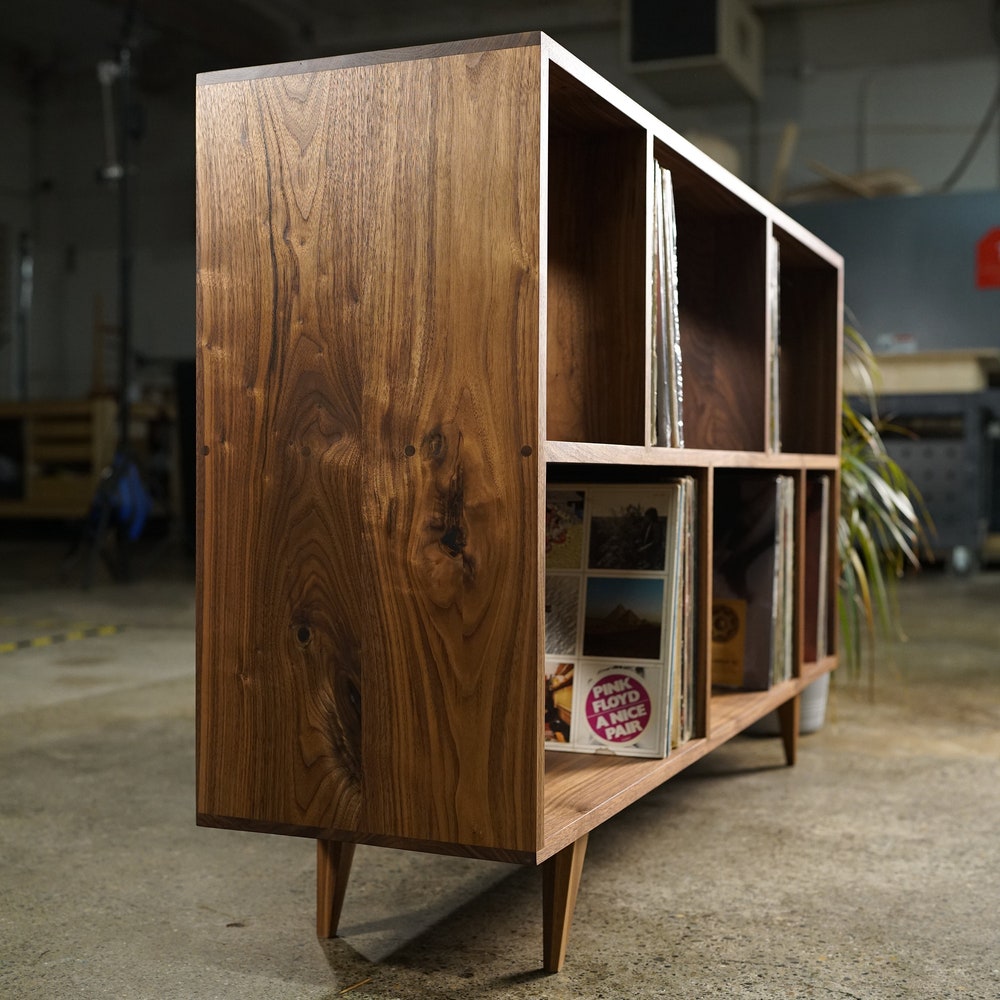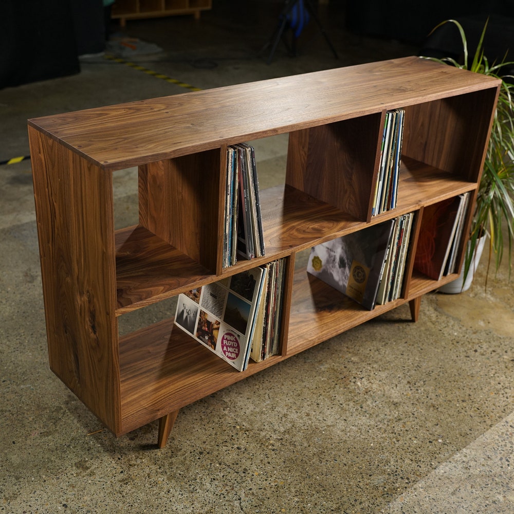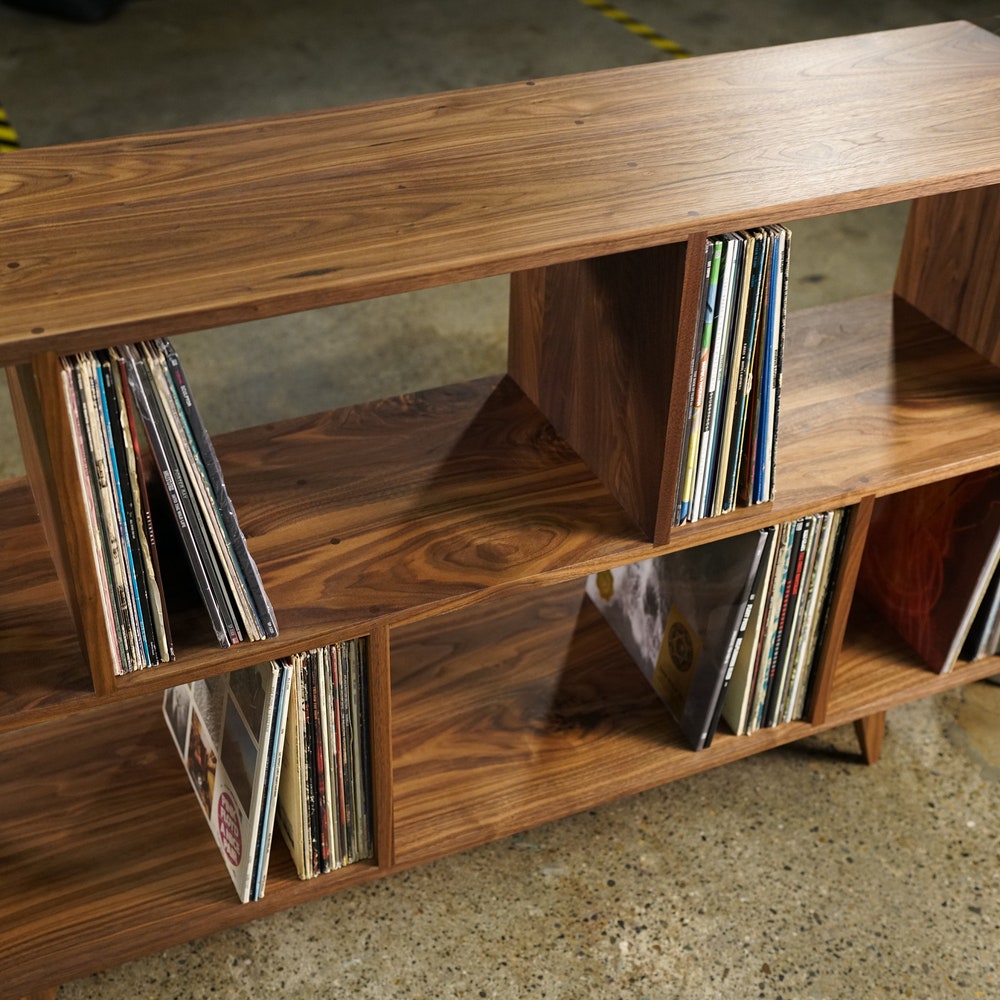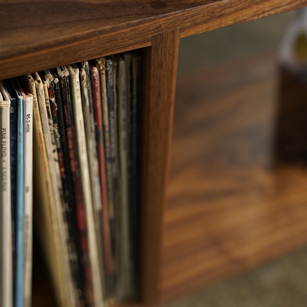 Bainbridge Vinyl LP Console, Modern LP Storage, Vinyl Storage, Mid Century Record Storage (Shown in Walnut)
