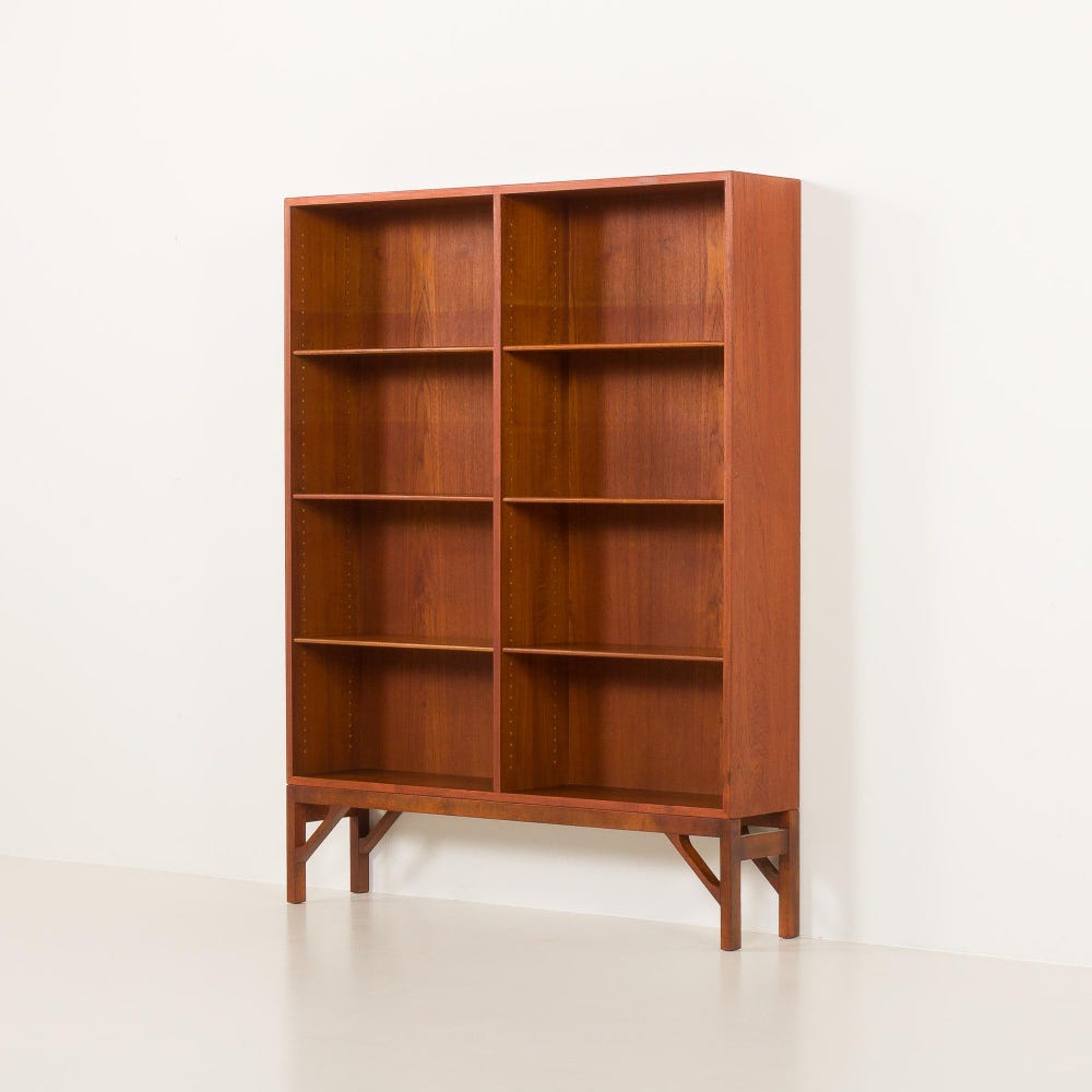 Crafted from high-quality teak, the bookcase showcases Mogensen’s preference for natural, durable woods. The natural finish highlights the beautiful grain patterns, while subtle details, like dowel joints, smooth finishes, and a finely sculpted base, demonstrate the craftsmanship involved. The design features a straightforward, sturdy structure with no superfluous details, staying true to Mogensen’s ethos of functional, practical design, and perfectly merging Asian influences with Scandinavian design principles.
