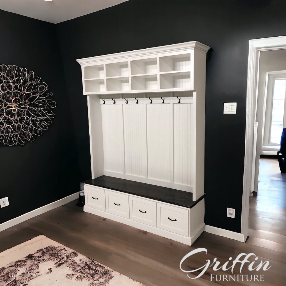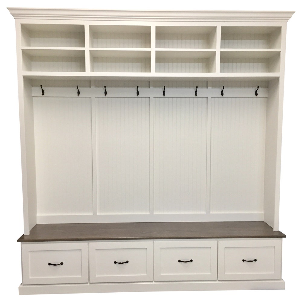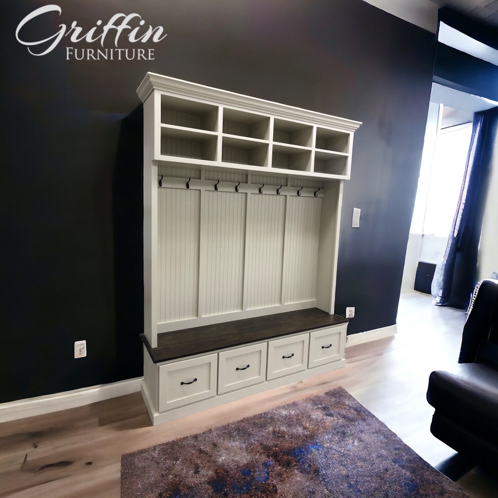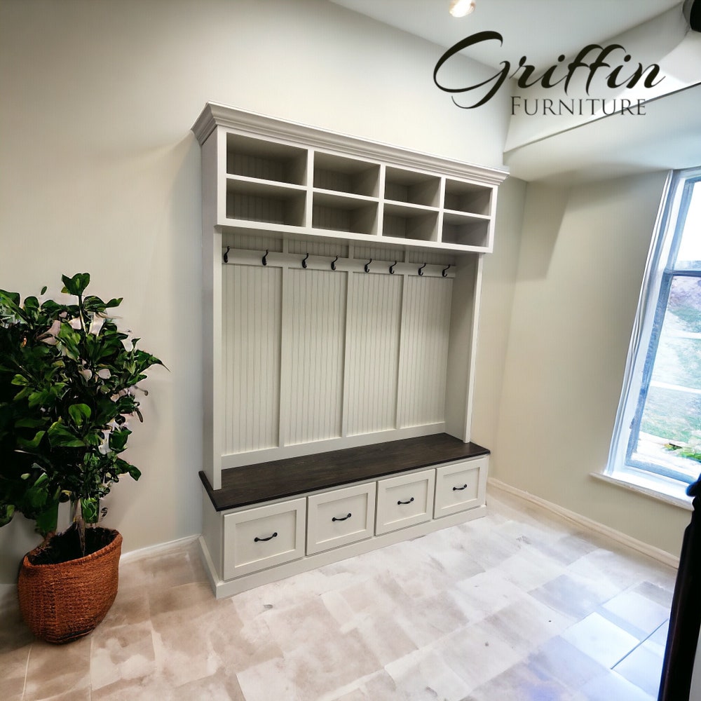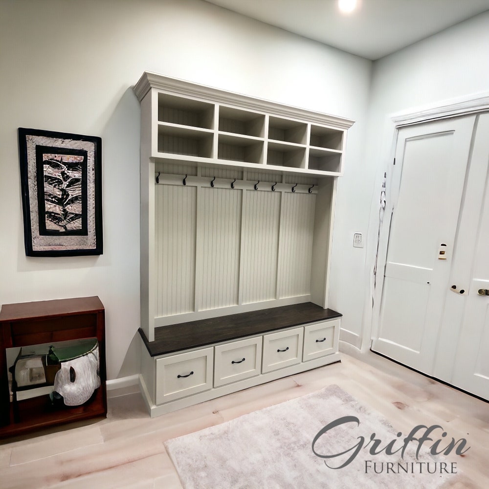 Branson Entryway Bench with Coat Rack | 4-Section Mudroom Storage Organizer | Custom Shoe Storage & Entryway Furniture