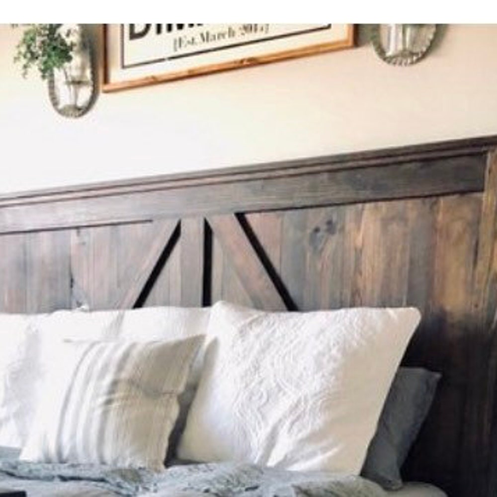 Queen: 67″ tall x 65″ wide headboard, 34″ tall x 65″ wide footboard