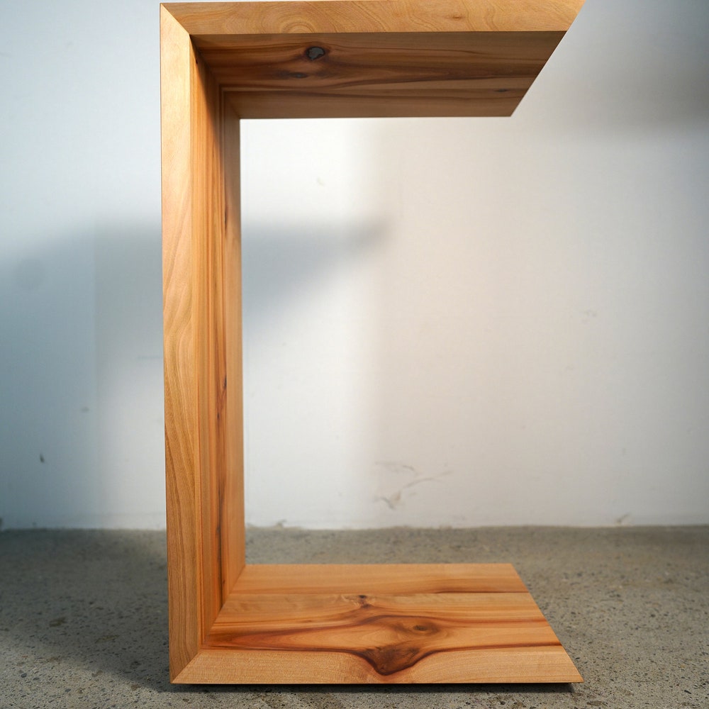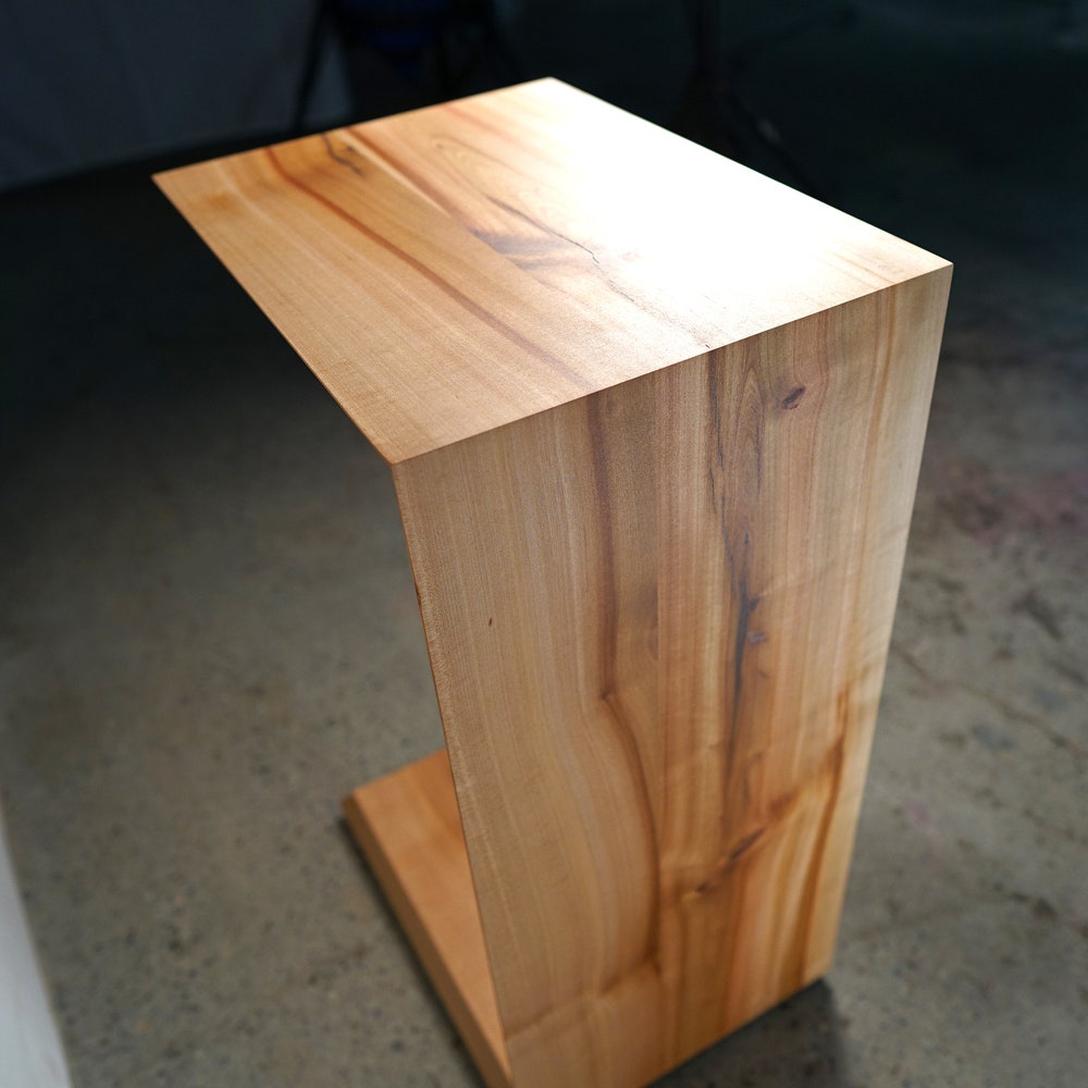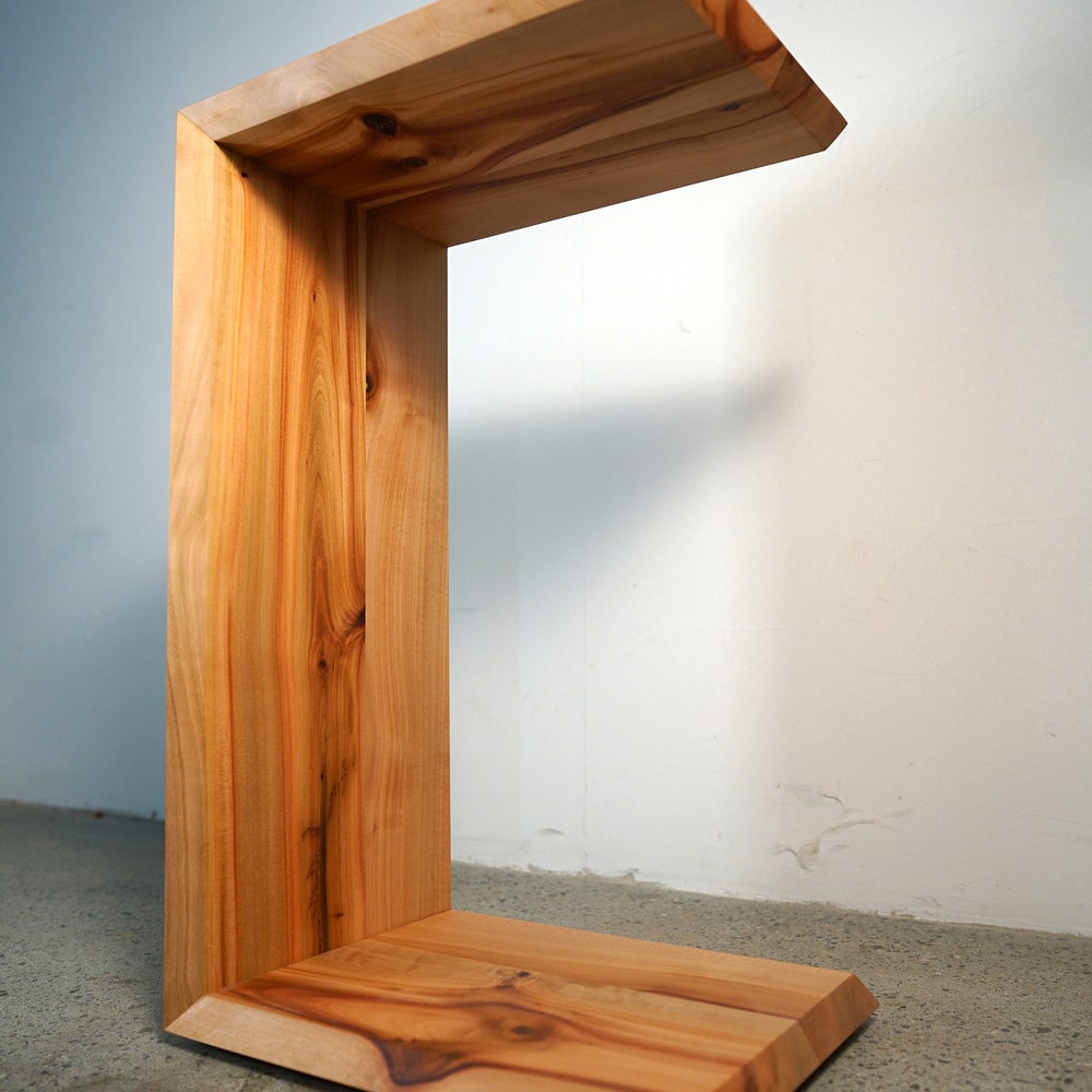 C-Table, End Table. Geometric End Table, Wood Nightstand, Modern Hardwood Side Table (Shown in Madrone)