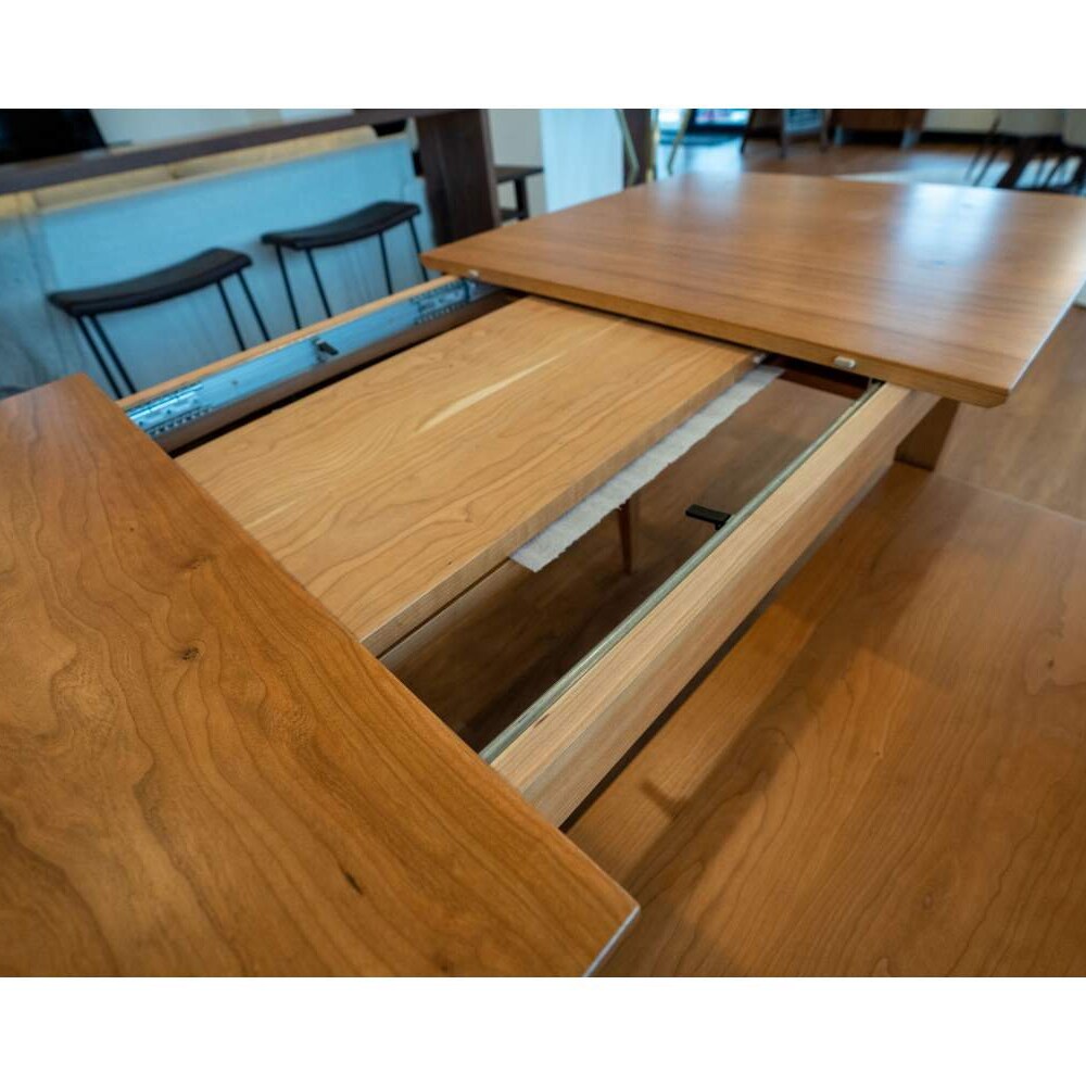 Our beautiful extendable dining table is a perfect dining table with leaves for your family to enjoy. Each extension kitchen table with leaves is meticulously handcrafted using beautiful Cherry, which looks perfect in modern, contemporary, rustic, or farmhouse décor. You’ll love the beautiful grain throughout, creating a warm and inviting atmosphere to create memories on. You’ll love seeing the beautiful grain permeate through the wood, showcasing the work mother nature slowly did over time. It’s an heirloom piece that you’ll have in your home for years to come.