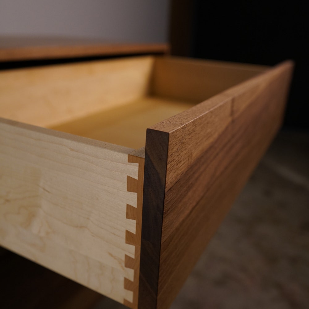 • SOLID MAPLE, DOVETAILED drawer boxes.