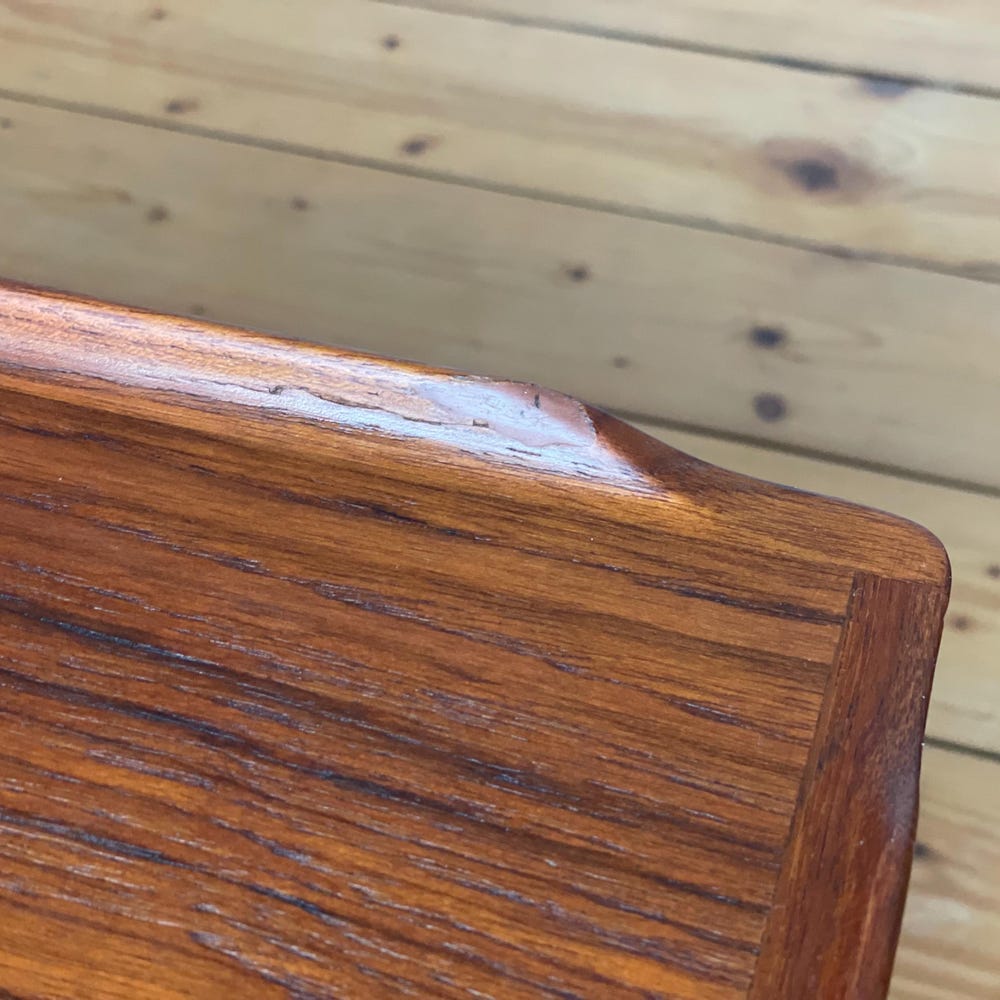 Normal signs of wear. One corner has been reworked. Vintage condition.