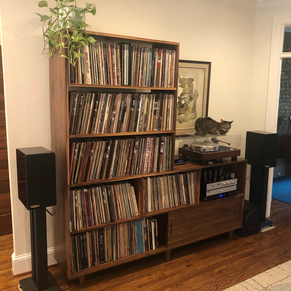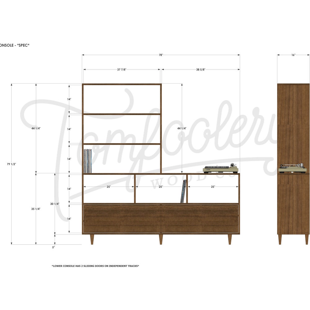 Danielson Vinyl Console, Left or Right Alignment, Mid-Century Media Console, Modern LP Storage, Hardwood Record Bookshelf (Shown in Walnut)