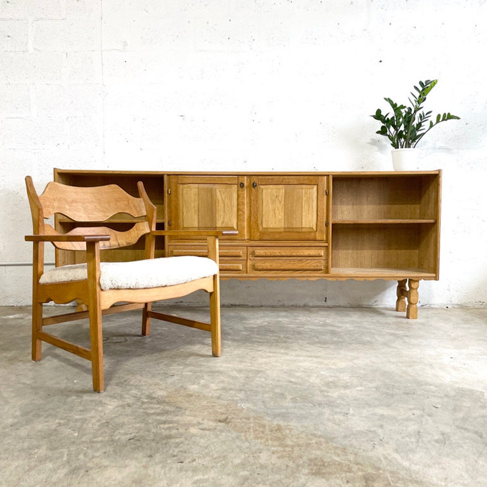 Danish Brutalist Oak Console or Credenza Henning Kjaernulf Attrib