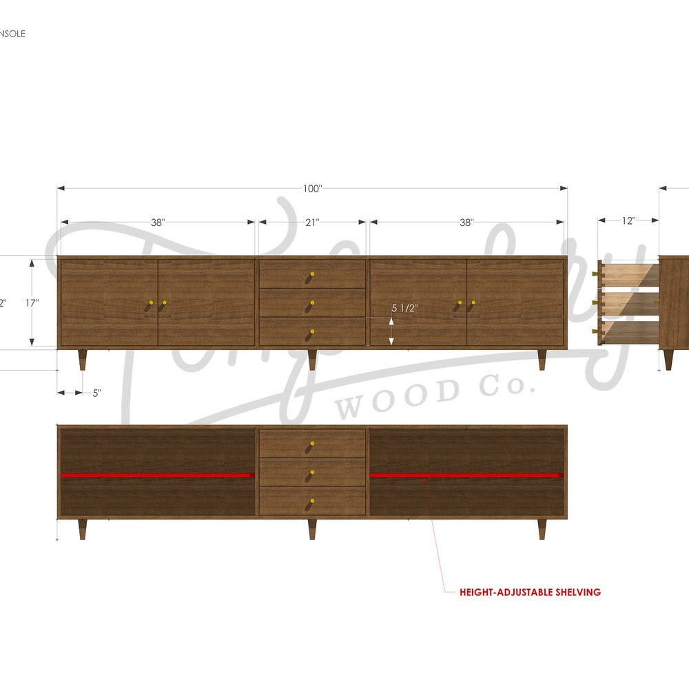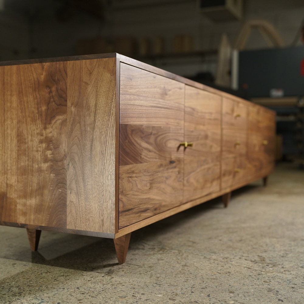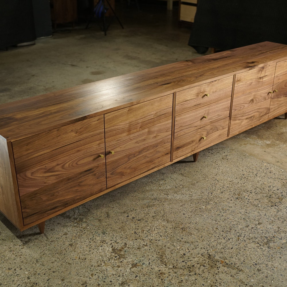 Danish Modern Console, 100″W, Mid-Century Modern Credenza, Modern Sideboard, Solid Wood Sideboard (Shown in Walnut)