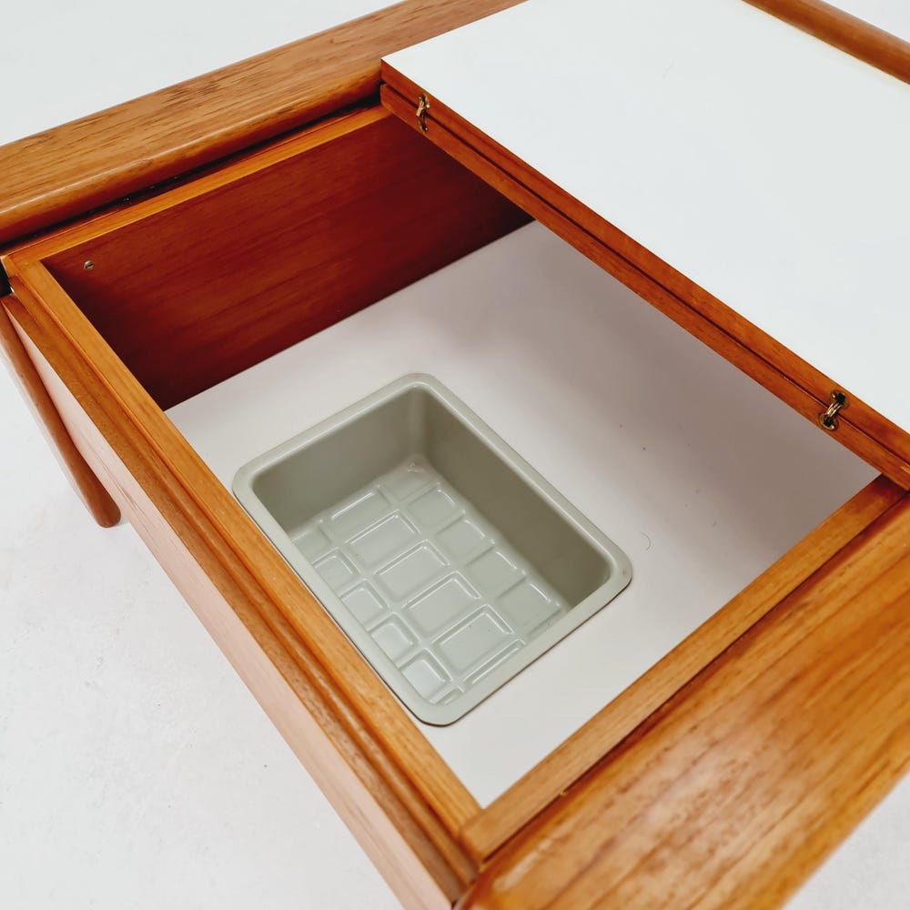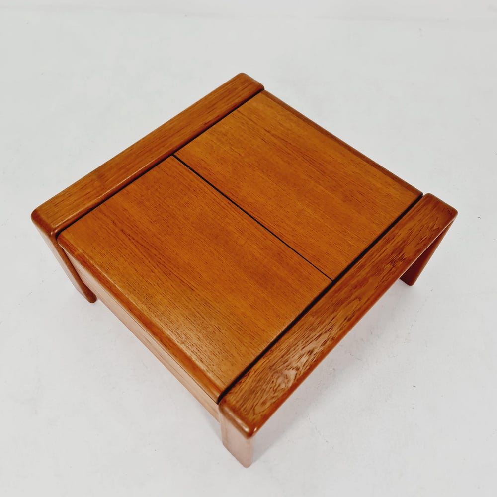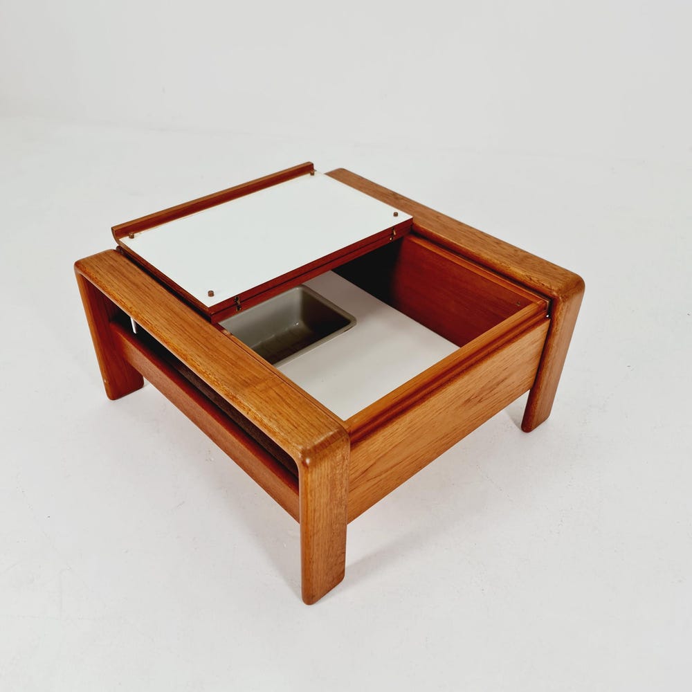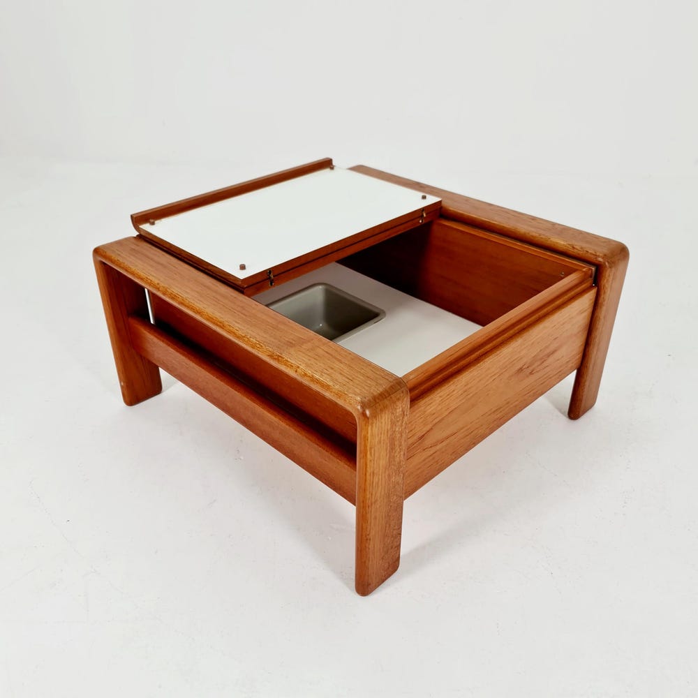 Danish teak coffee table / bar / drinks cabinet by EMC Möbelfabrik, 1960s Design year: 1960s Made in Denmark Dimensions: 77D x 77W x 40H cm It is in great vintage condition, however, as with all vintage items some minor wear marks should be expected. Witin Germany: >> Delivery is possible within 50km from my […]