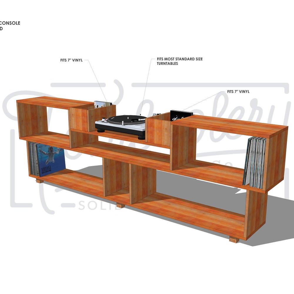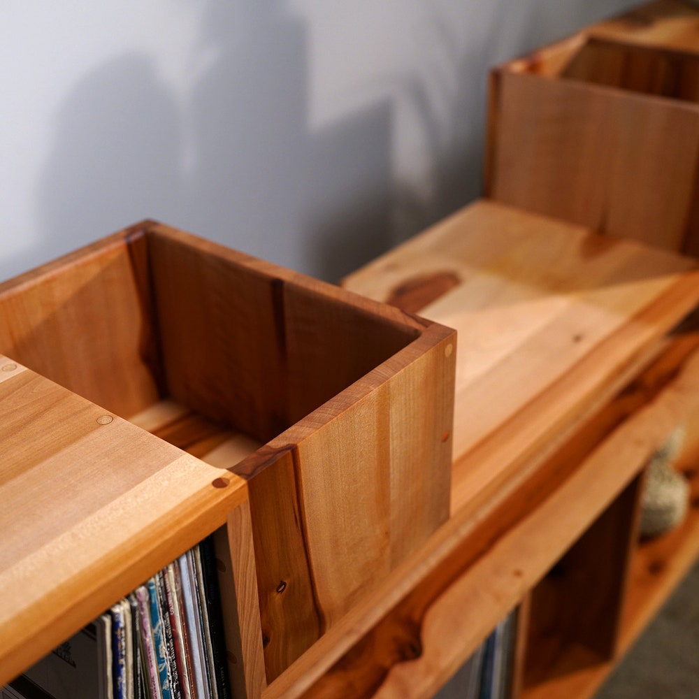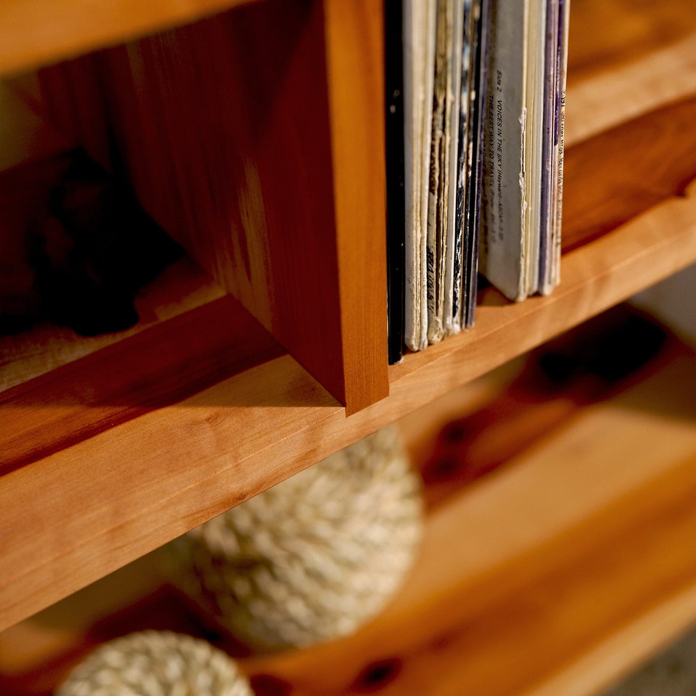 • The interior shelving fits Vinyl LPs, larger books, etc.