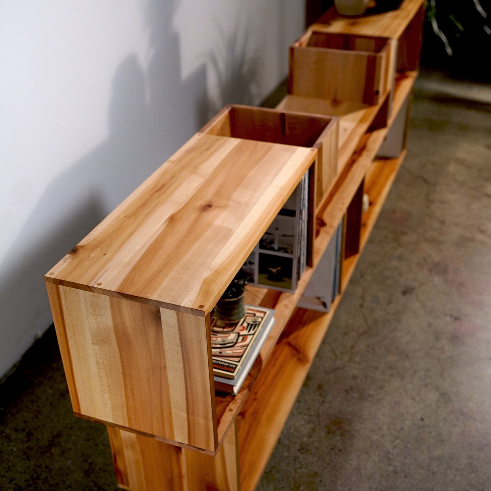 Emerson Vinyl Console, LP Storage, Modern Entertainment Storage, Modern Solid Wood Media Console, Wood Console (Shown in Madrone)