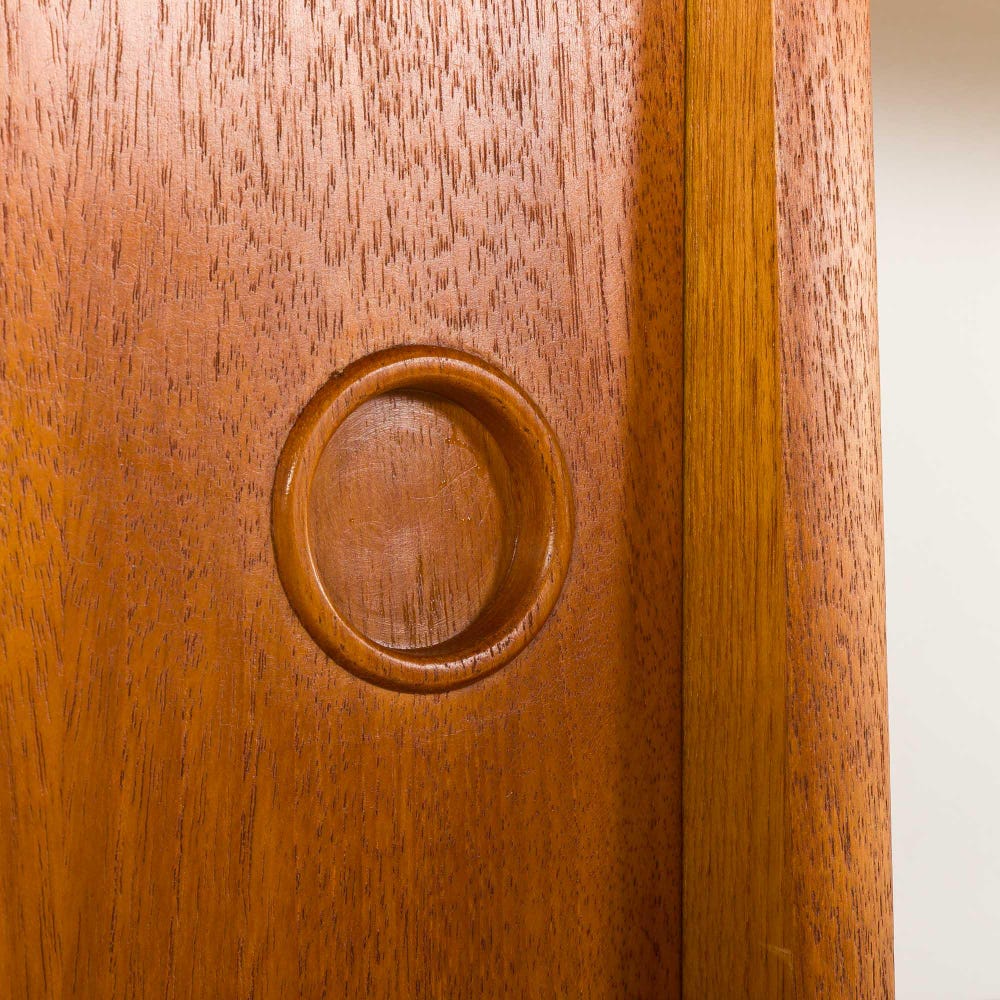 Excellent vintage condition with very light, age-appropriate wear. The teak has developed a rich patina, and the oiled finish highlights the natural beauty of the wood grain. The back of the cabinets is marked “Made in Norway”, confirming its authenticity and origin.