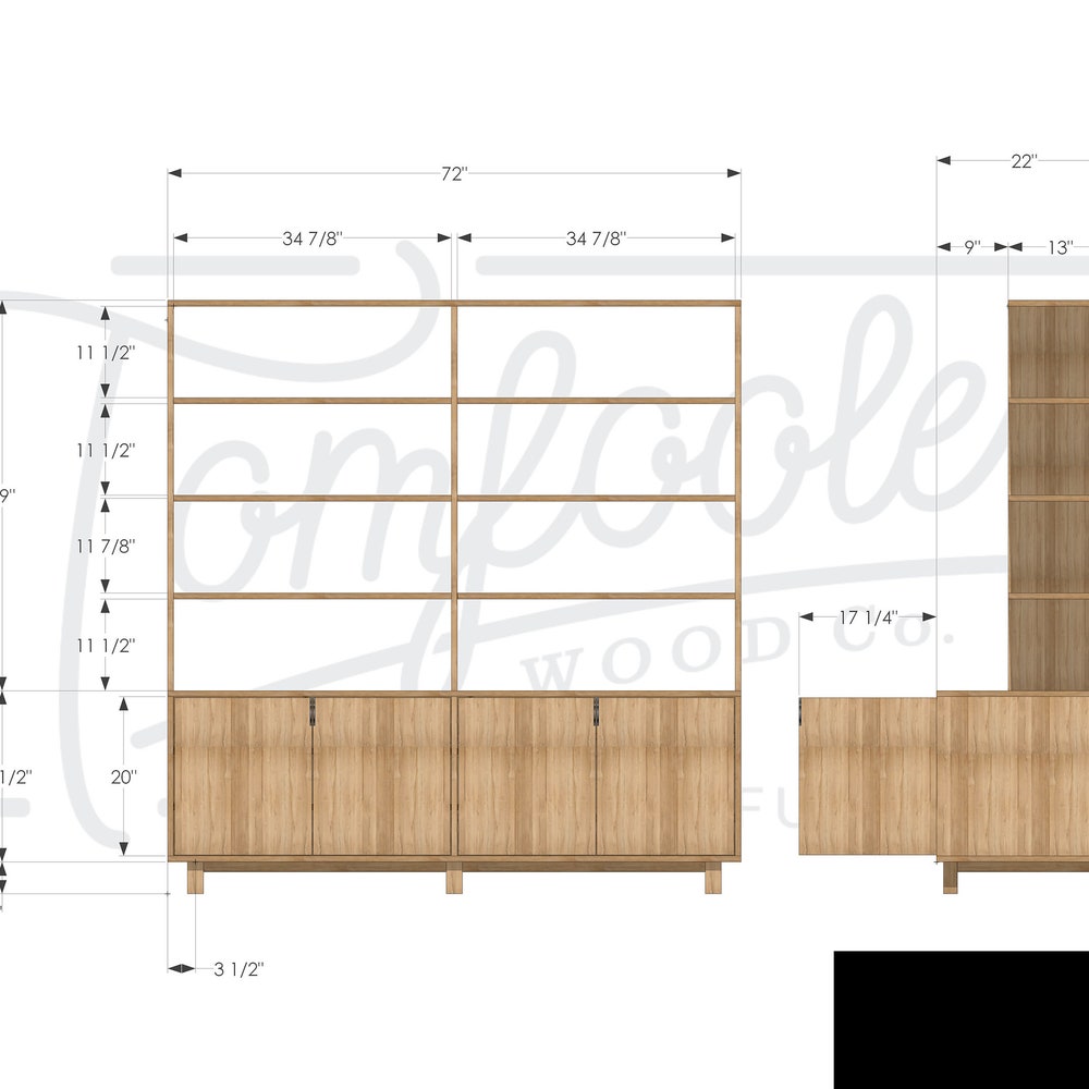 MADE TO ORDER with responsibly-sourced domestic SOLID HARDWOOD. Every board hand-selected and closely inspected for quality. We spare no expense when it comes to using the best available hardware, components and wood finishing products. Proudly built in the Pacific Northwest by career craftsmen. DIMENSIONS:• Overall: 72″W x 74.5″H x 22″D• Door Cabinets, Left/Right: 34.875″W x […]