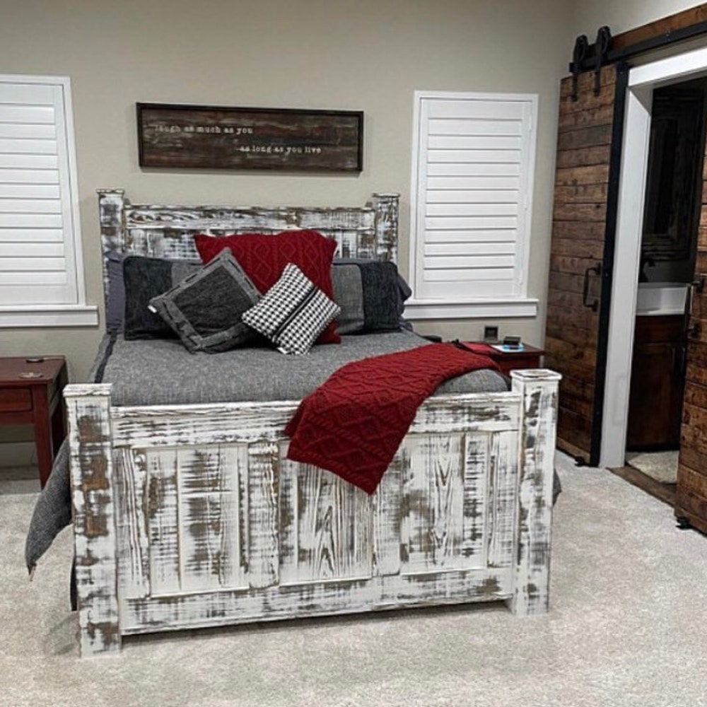 Griffin Rustic Farmhouse Wood Bed Frame – King or Queen Size | Handmade Solid Wood Panel Bed | Custom Farmhouse Furniture
