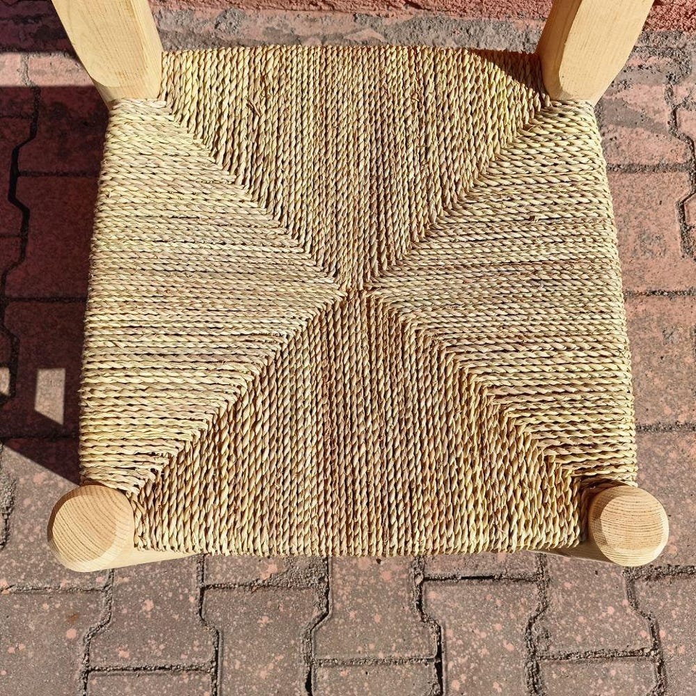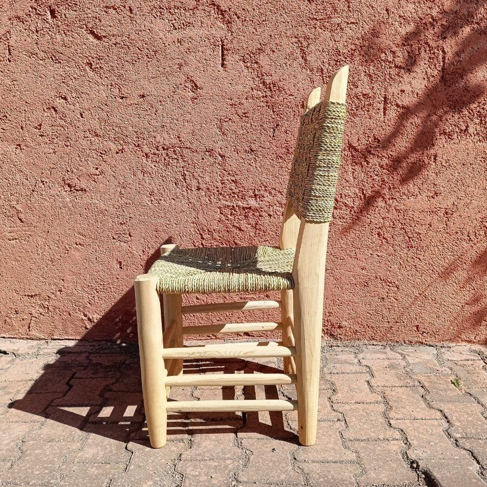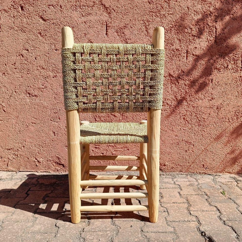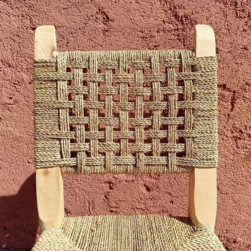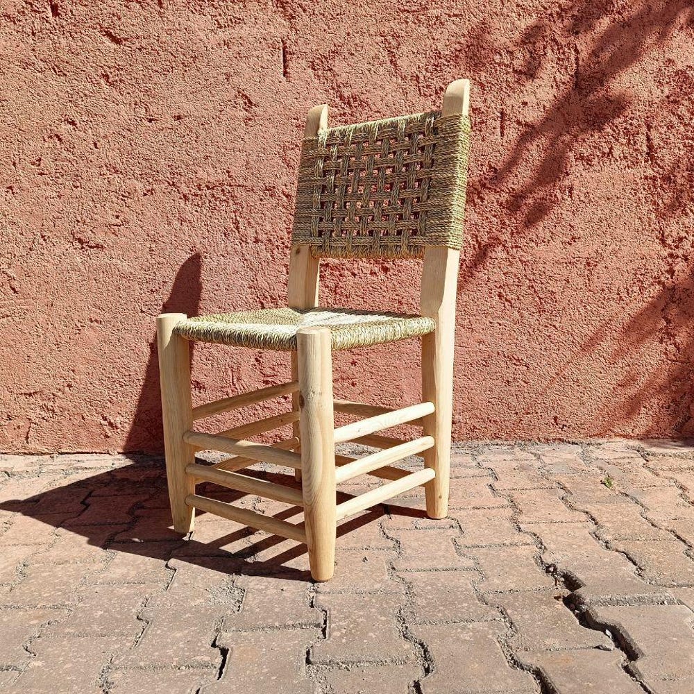 Handcrafted Moroccan Armchair, Wooden Kitchen Island Stool, Boho Home Decor, Rustic Palm Leaf Cord Chair