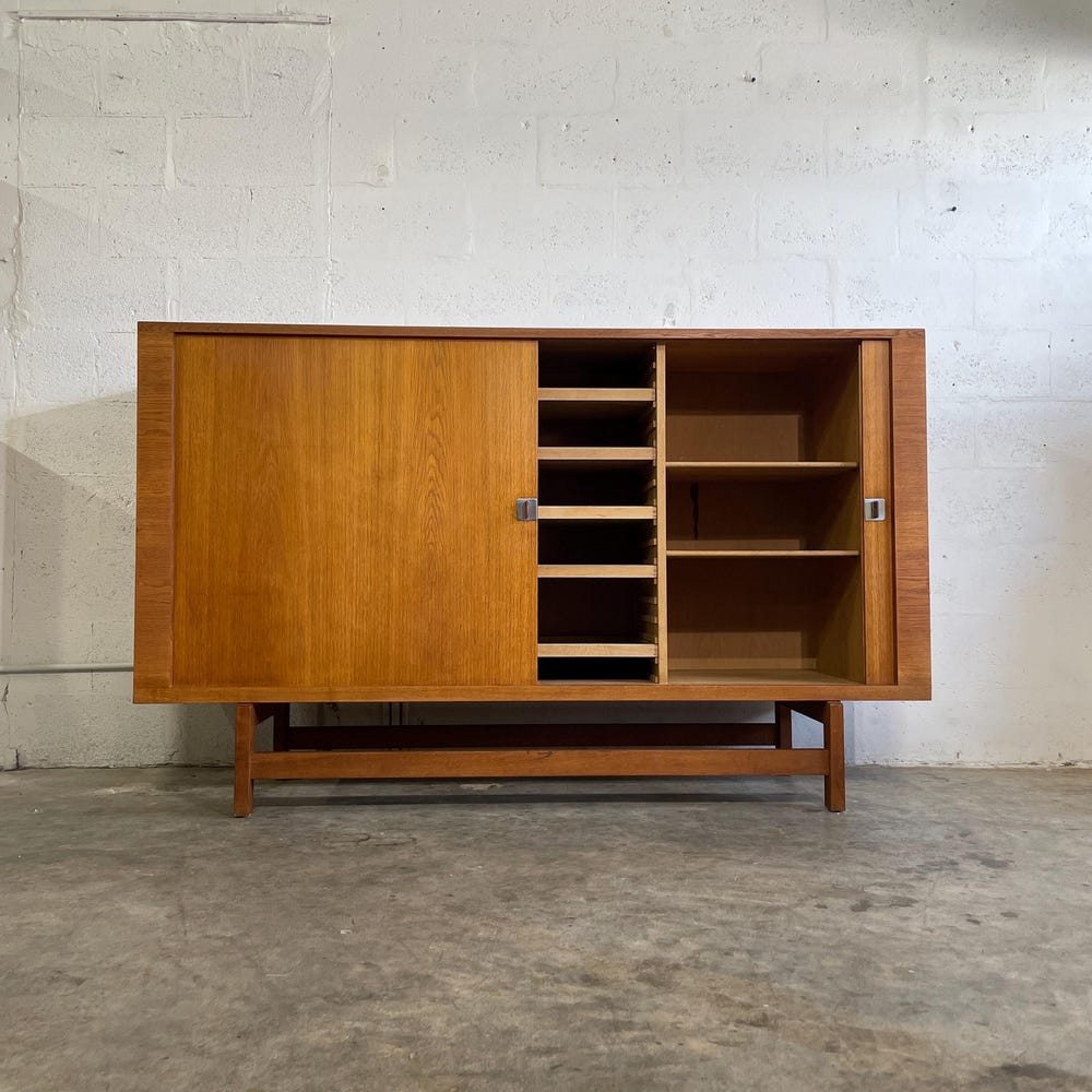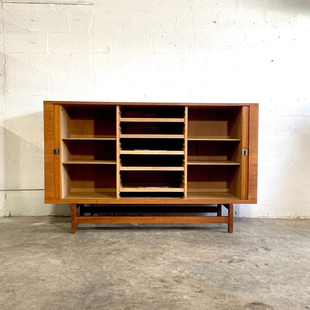 Shipping not free* Hans Wegner Danish Modern Tall Sideboard with lots of storage. Smooth tambour doors. 71w 19.25d 43.5h