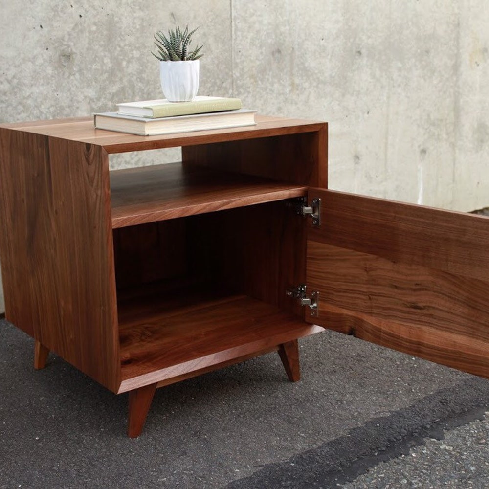Hein End Table, Mid Century Side Table, Mid-Century Night Stand, Solid Hardwood Modern Nightstand (Shown in Walnut)