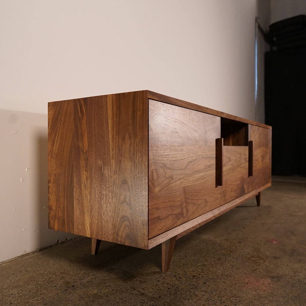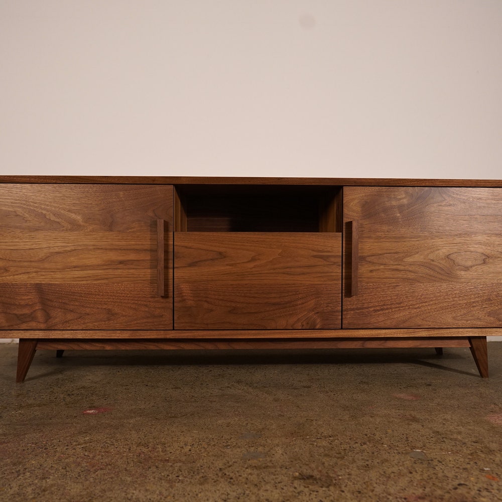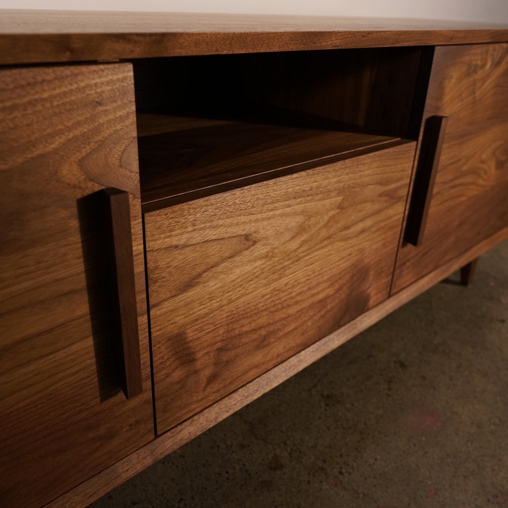Hein Modern Console, 65″W, Mid-Century Media Console, Modern Solid Wood Credenza, Modern Sideboard (Shown in Walnut)