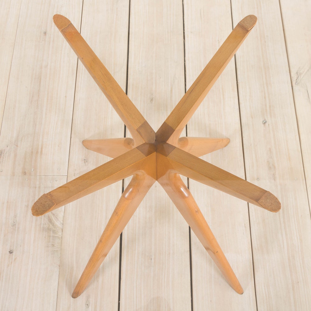 This very elegant and minimalistic Italian table was designed in manner of Ico Parisi for Ariberto Colombo projects. Fruitwood sculptular base is in a very good condition, stable and ready to serve. The tabletop comes with a thick glass, without any chips or noticeable scratches.