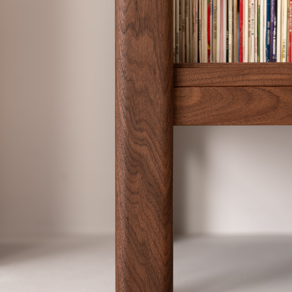 Supported by robust legs, the JAMM stand radiates a timeless charm and resilience. Constructed entirely from solid American walnut wood, it offers lasting durability and an enduring style.