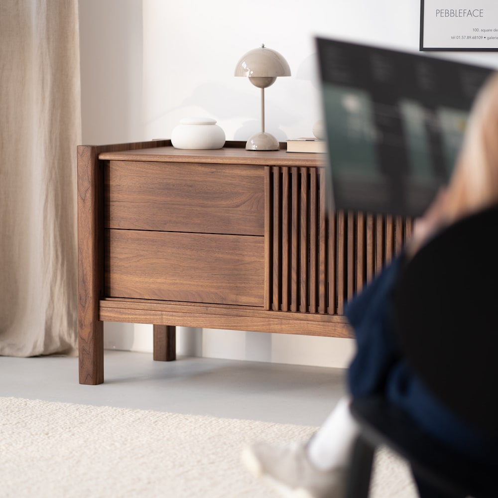 JAMM LOW 160 – Record player stand, media console, TV stand, made of American walnut wood
