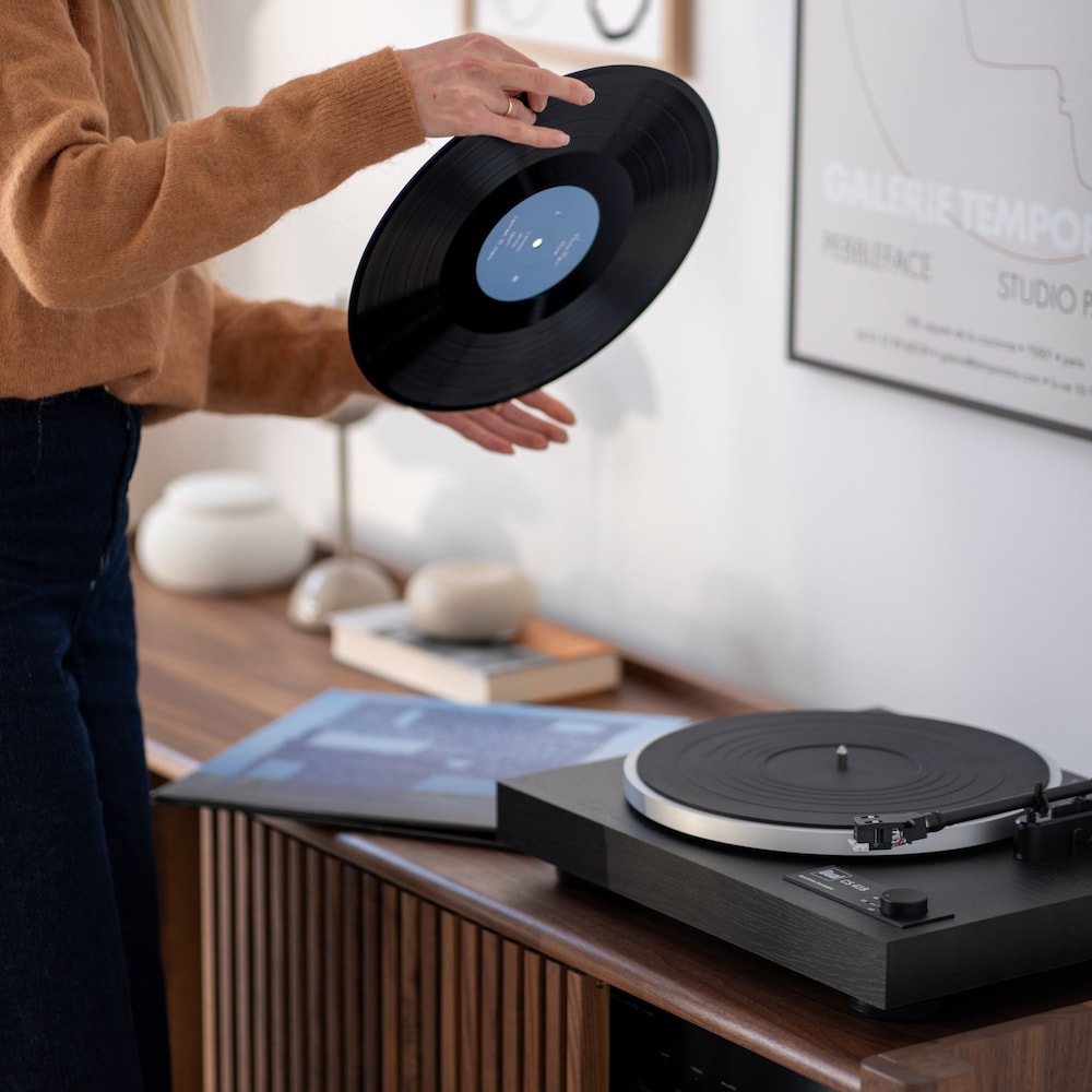Organized Order: Equipped with a cable management system, the JAMM record player stand ensures that the back of the furniture remains as aesthetic and organized as its front. Its open design allows easy access to all audio setup components.