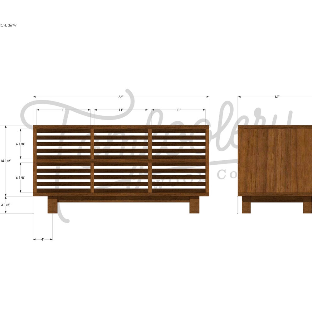 • Overall: 36″W x 18″H x 16″D