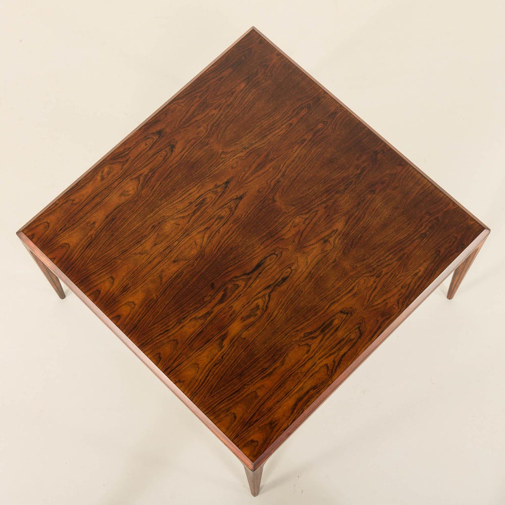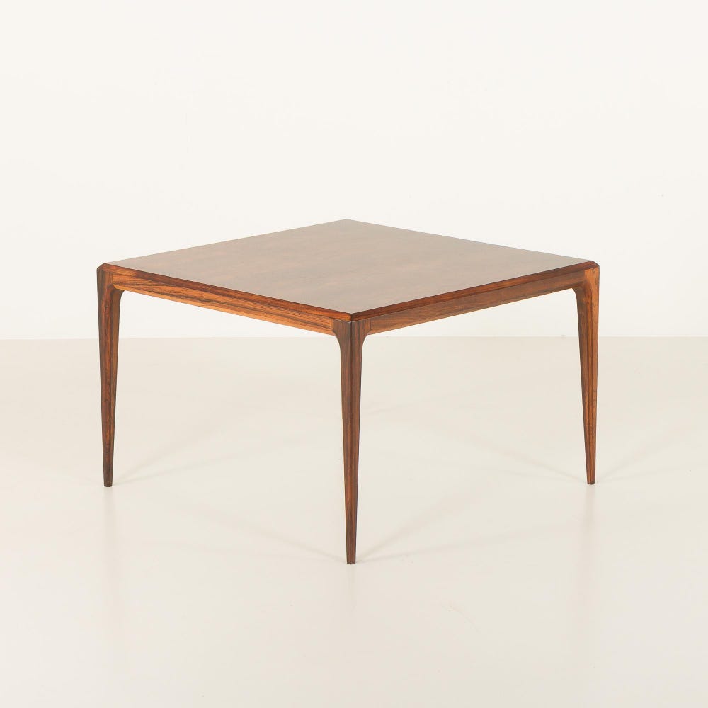 The Johannes Andersen rosewood coffee table from the 1960s is a classic example of Danish design with a simple, minimalist aesthetic. The manufacturer’s label – Silkeborg – is preserved, and validates its origin. The table also has the Danish control quality mark, confirming its status as a masterpiece of Danish carpentry.