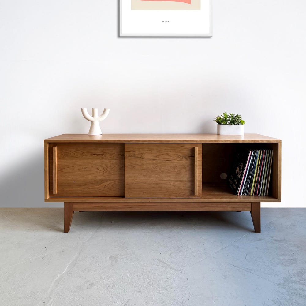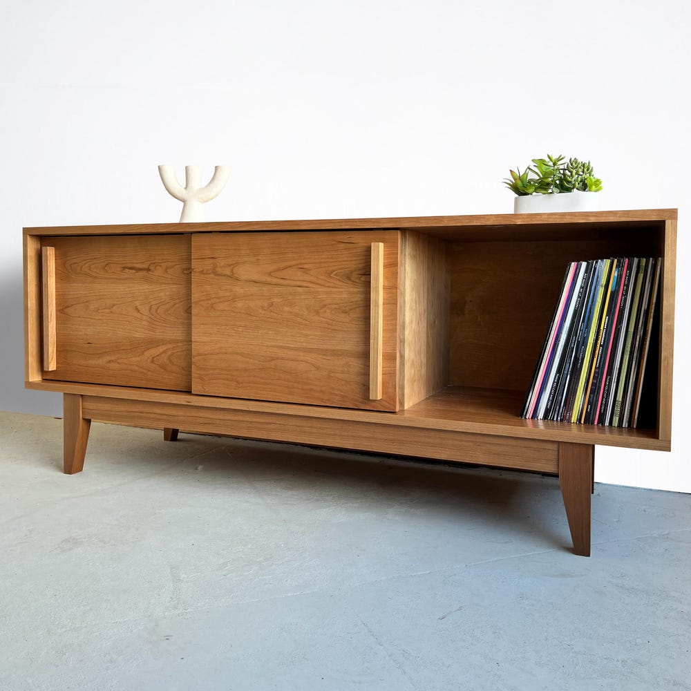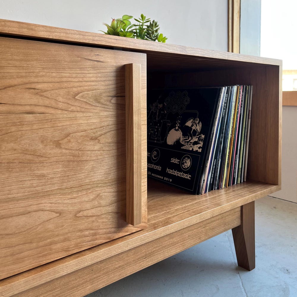Kasse Media Console – Solid Cherry – Record Storage – Wood Base – 60L x 19W x 24 – In Stock!