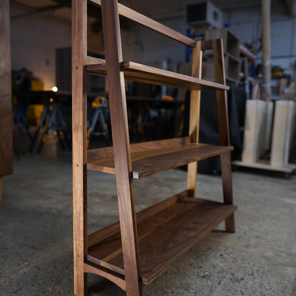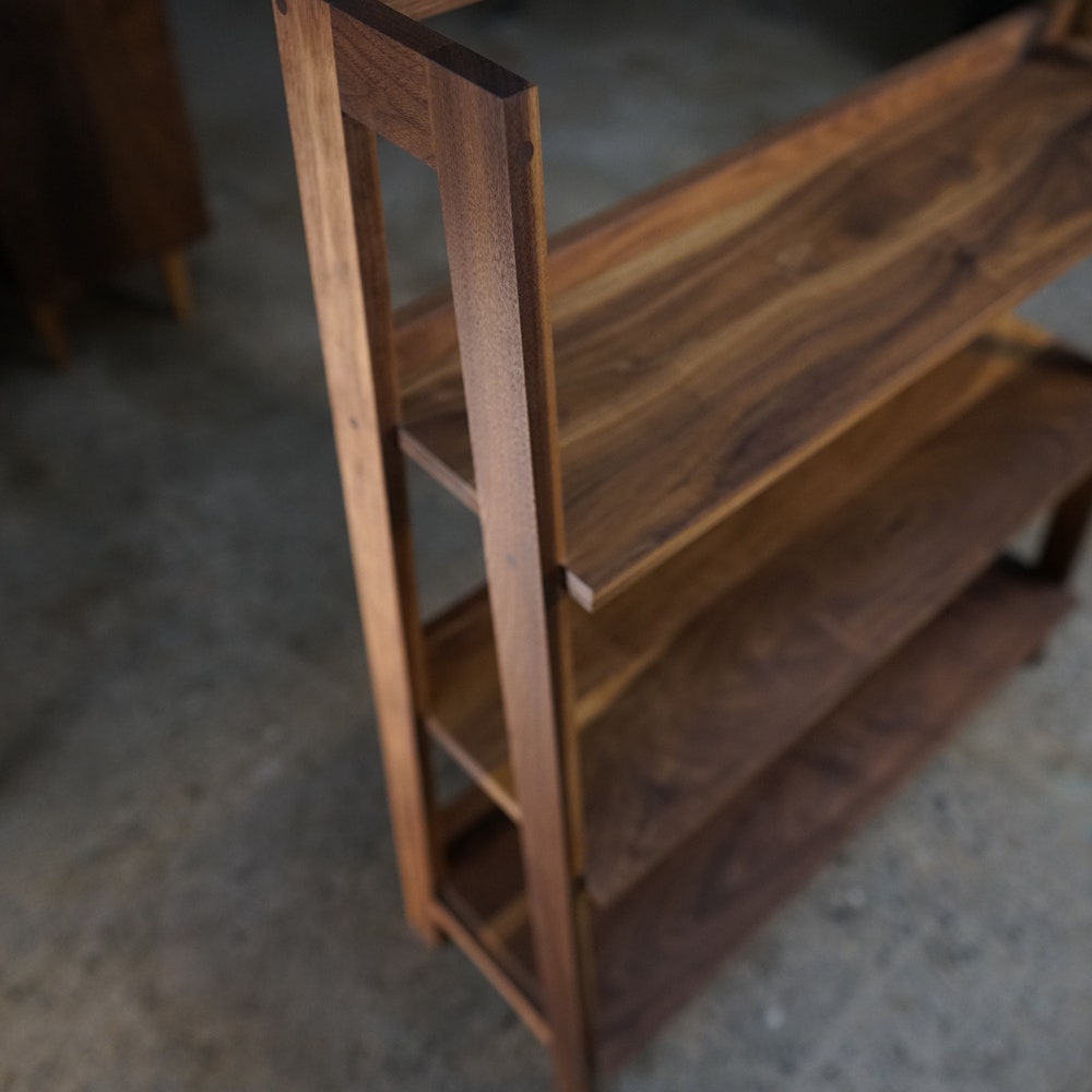 Komiss Modern Slant Bookcase, 3 Shelves, Slanted Bookshelf, Solid Hardwood Slanted Bookcase, Ladder Shelf (Shown in Walnut)