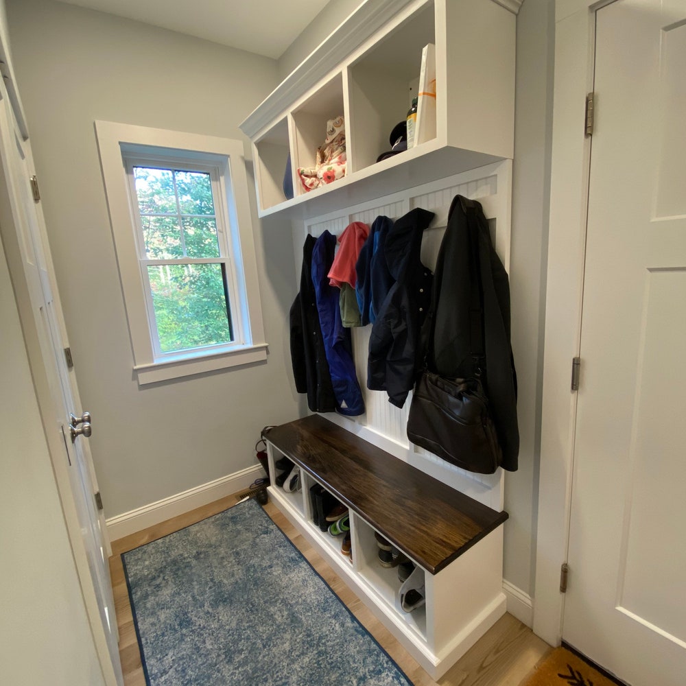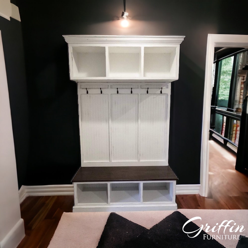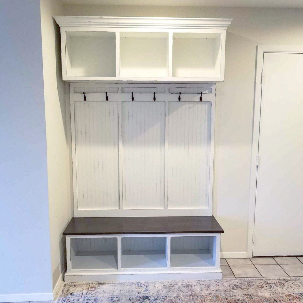 Long Island Hall Tree | 3-Section Entryway Bench with Shoe Storage & Coat Rack | Mudroom Organizer | Custom Entryway Furniture