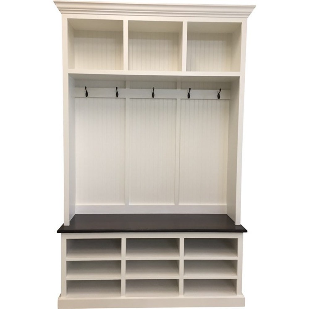 Included: 3 cubbies up top, 9 cubbies in the bottom, 6 hooks