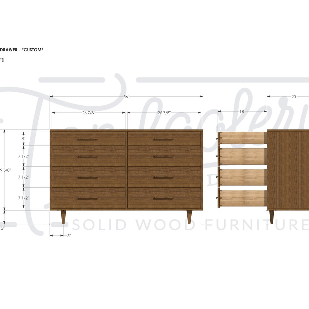 Lowboy Dresser, 8 Drawers, Mid-Century Dresser, Modern Lowboy, 8 Drawer Lowboy, Solid Hardwood Dresser (Shown in Walnut)