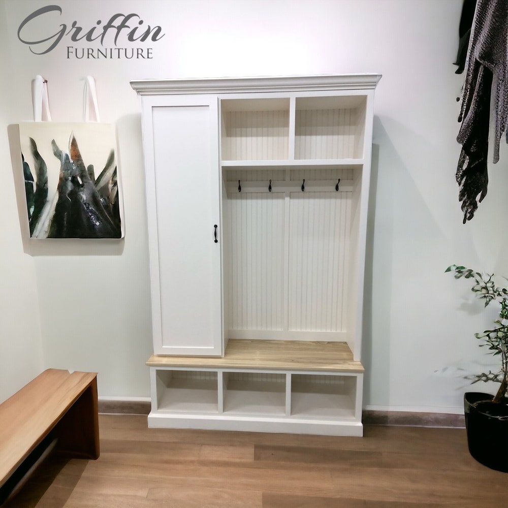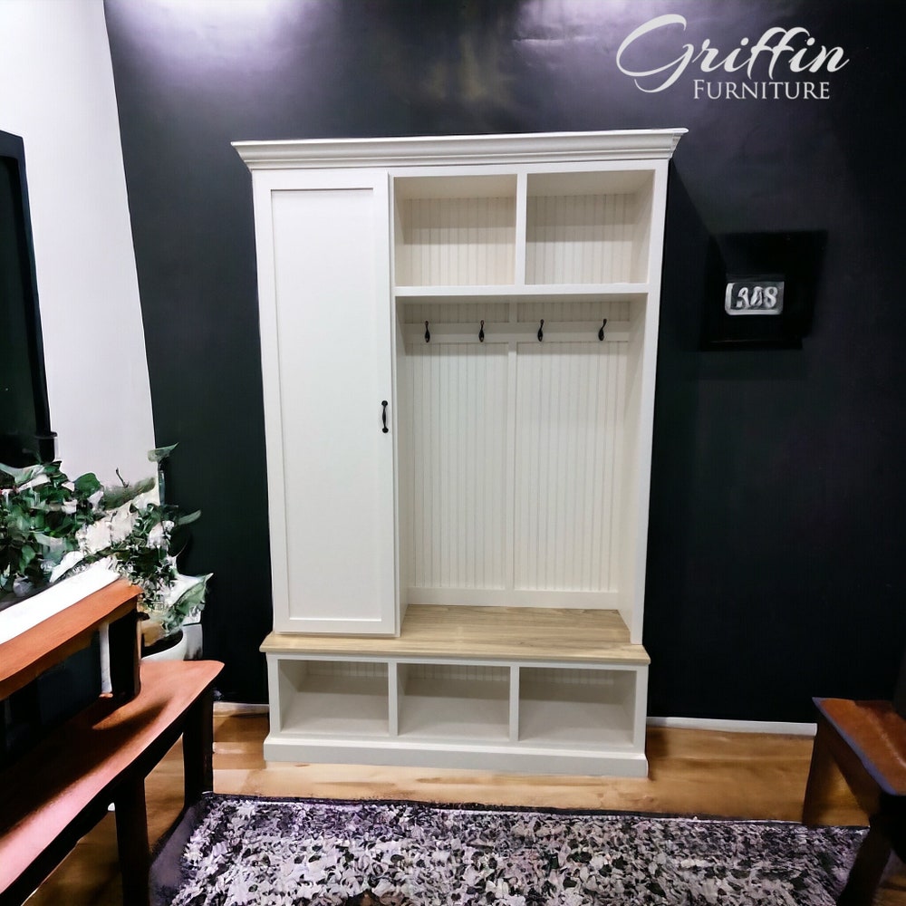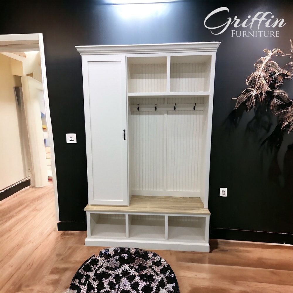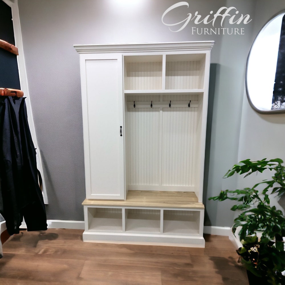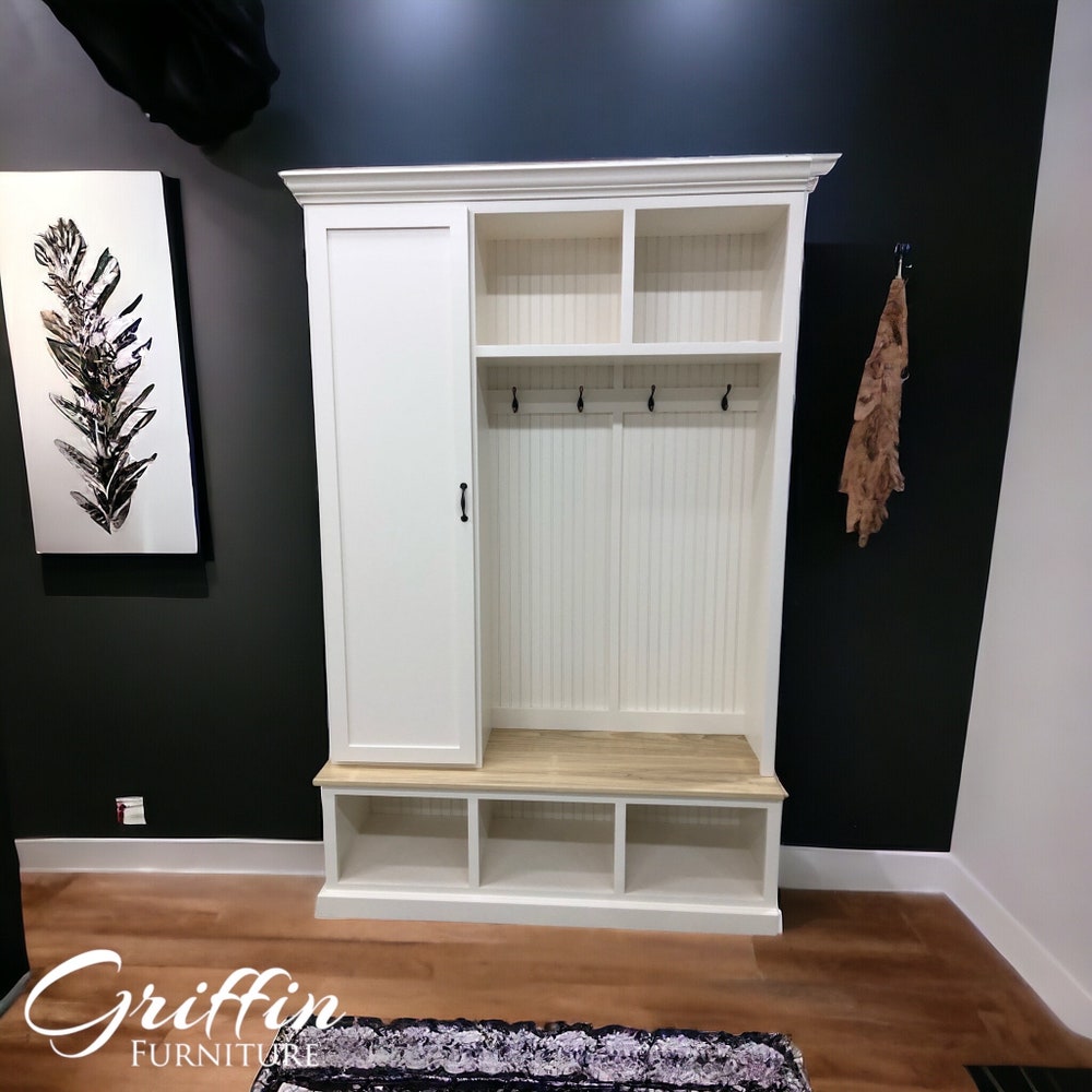 Miami Entryway Bench with Shoe Storage | Mudroom Locker | Custom Hall Tree | Coat Rack | Farmhouse Entry Organizer | Handmade Furniture