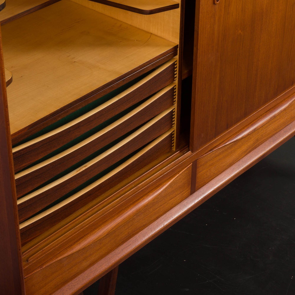 Mid-century teak highboard with bar cabinet, teak credenza in Kurt Ostervig style, Denmark, 1960s
