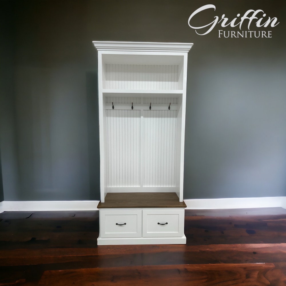 Looking for a convenient storage solution for your shoes, coats, and bags? Our mudroom lockers with benches and drawers are perfect for you! Each unit is meticulously crafted to order and features four standard hooks for added convenience. Plus, the drawers are equipped with 100-pound slides, allowing for effortless opening and closing.Color: Our items are […]