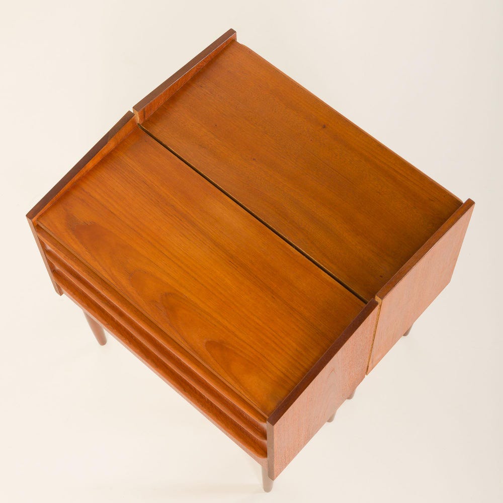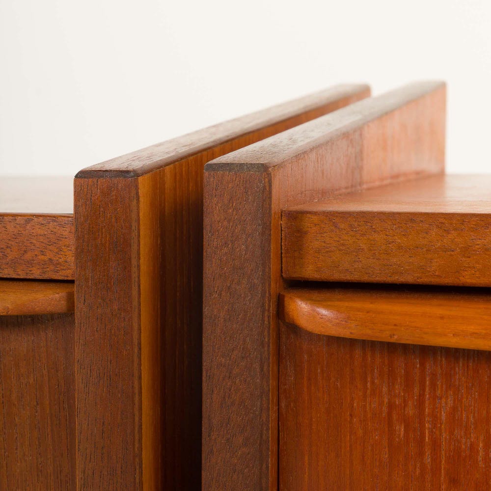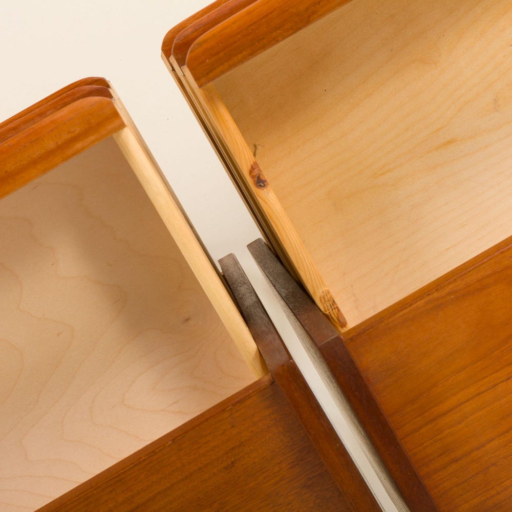 Our team thoroughly checked the nightstands and they remain in great original condition with only minimal traces of use. The drawers are clean and work smoothly. The wood is protected with an additional layer of Danish oil to enhance its natural beauty.