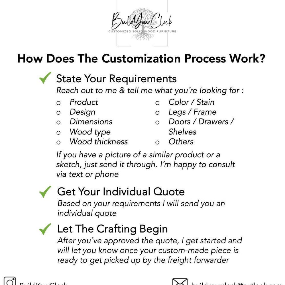 At BuildYourClock, we are dedicated to providing you with high-quality, handmade items that pay special attention to detail. Each piece is crafted with love and care to ensure it meets our high standards and your expectations.