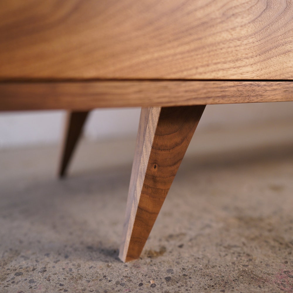 • Angled + tapered Mid-Century legs.