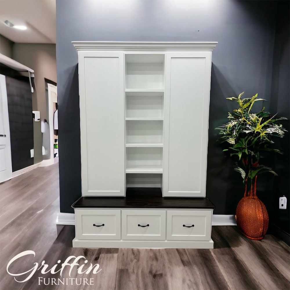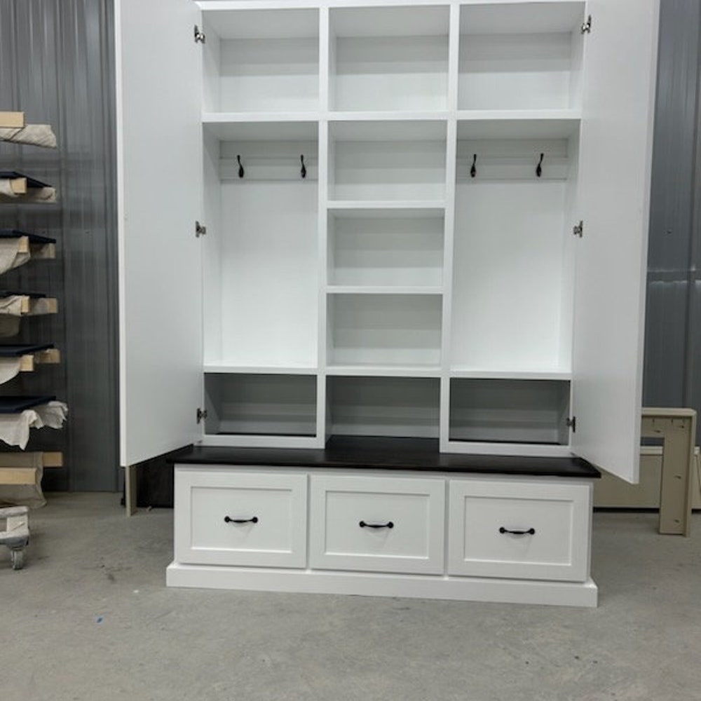 Philadelphia Mudroom Locker Bench | Custom Hall Tree with Hooks & Storage – Entryway Organizer | Farmhouse Coat Rack | Handmade Furniture