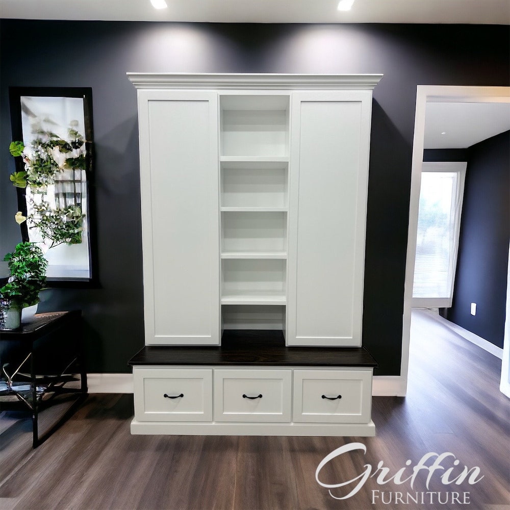 This mudroom locker hall tree bench has shelving in the middle for small items to maximize your space. We use soft close drawer slides and rubbed oil bronze hardware. Color:This item is a custom color but we use all lacquer paints and minwax stains. If you want any color other then white we use Sherwin […]