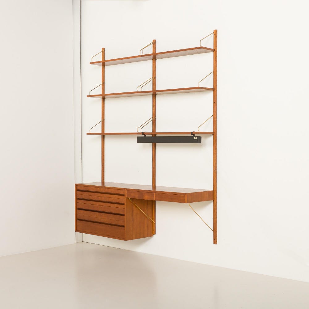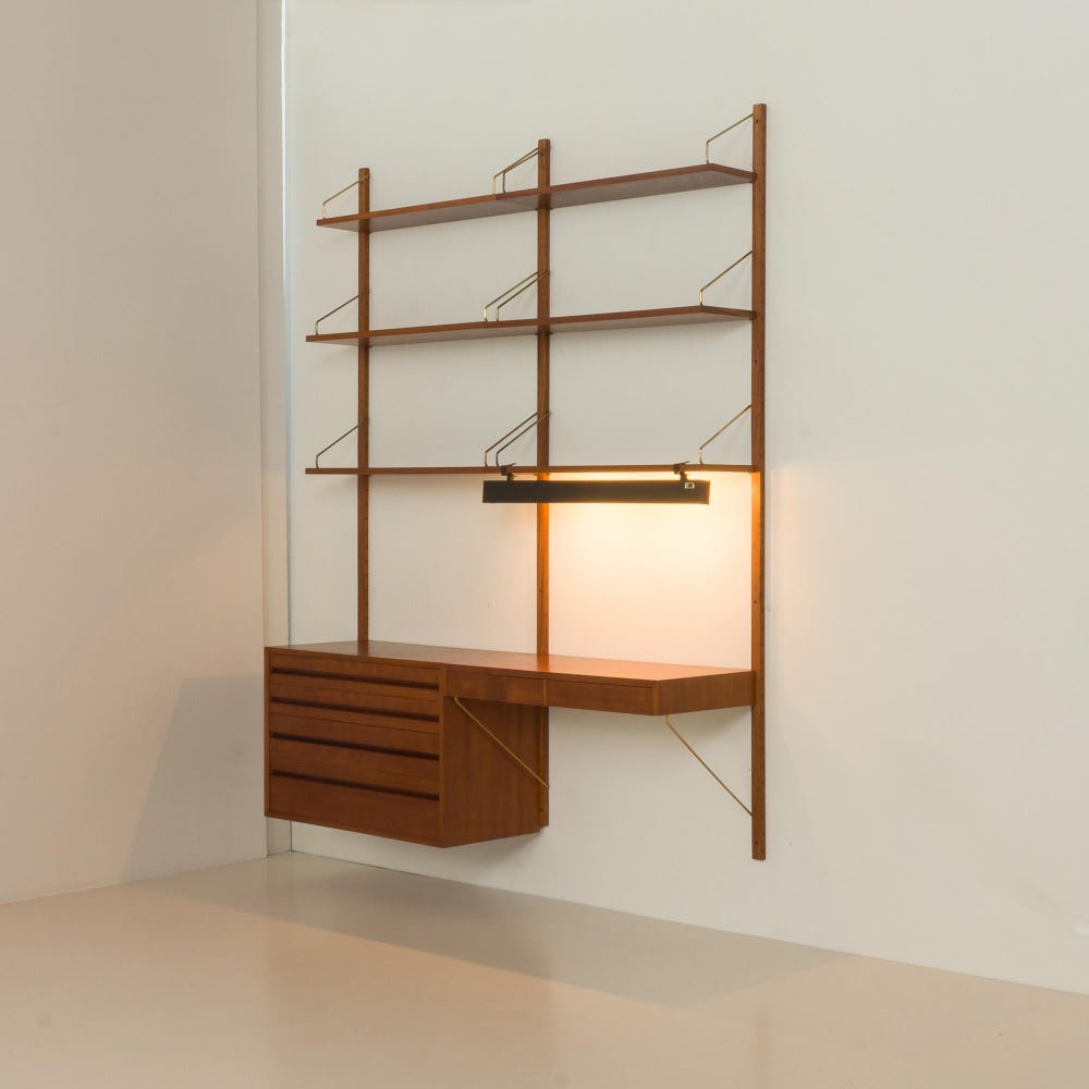 Poul Cadovius home office wall unit with a desk and a lamp for Cado, Denamrk 1960s