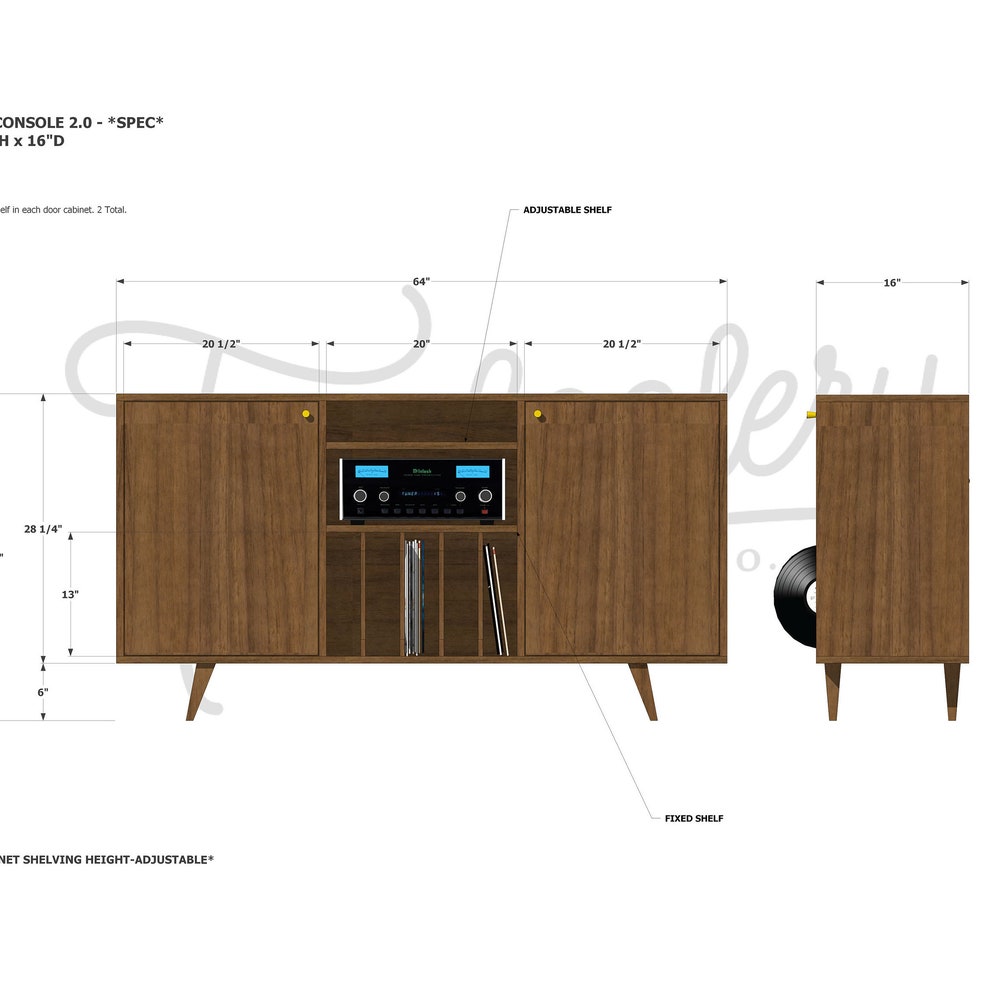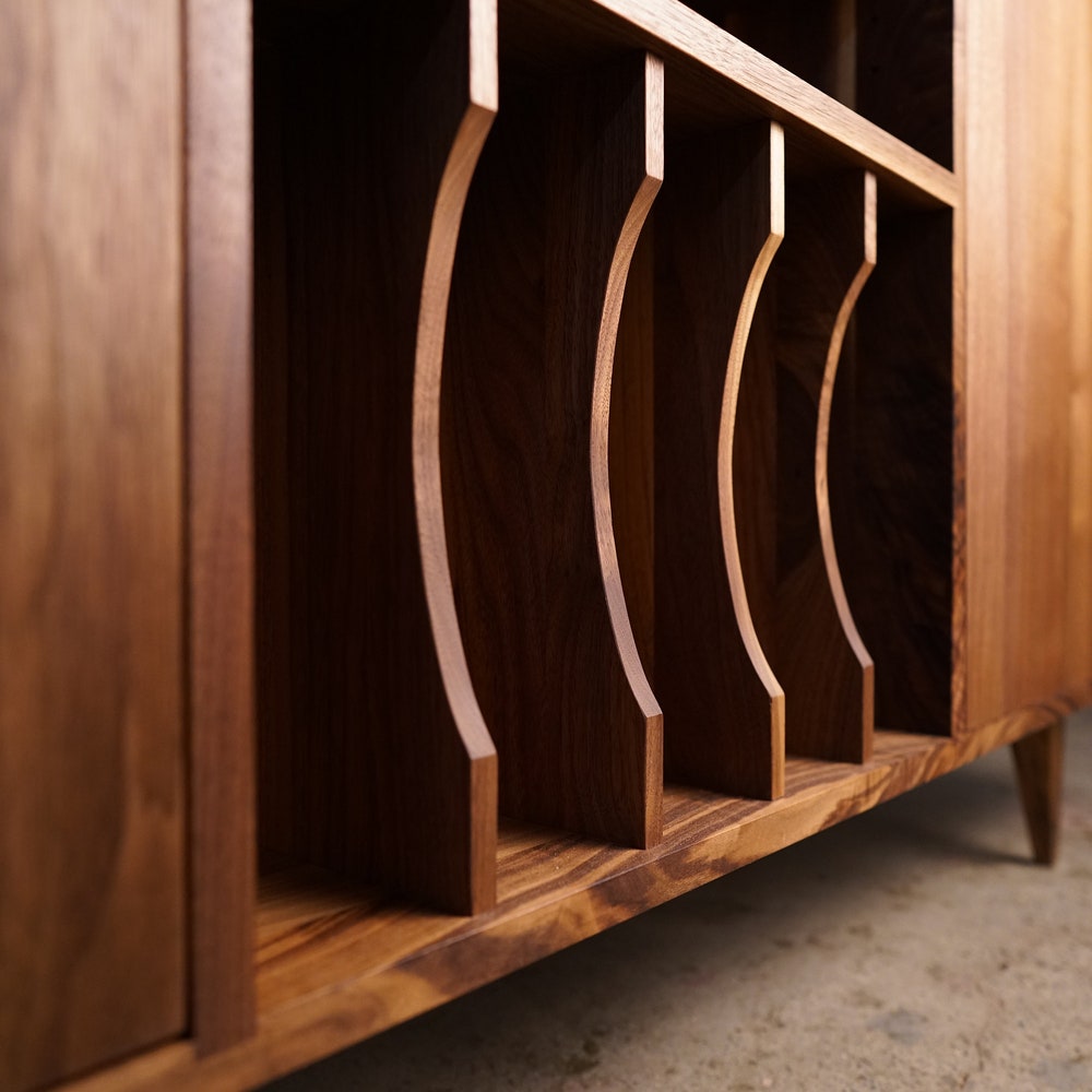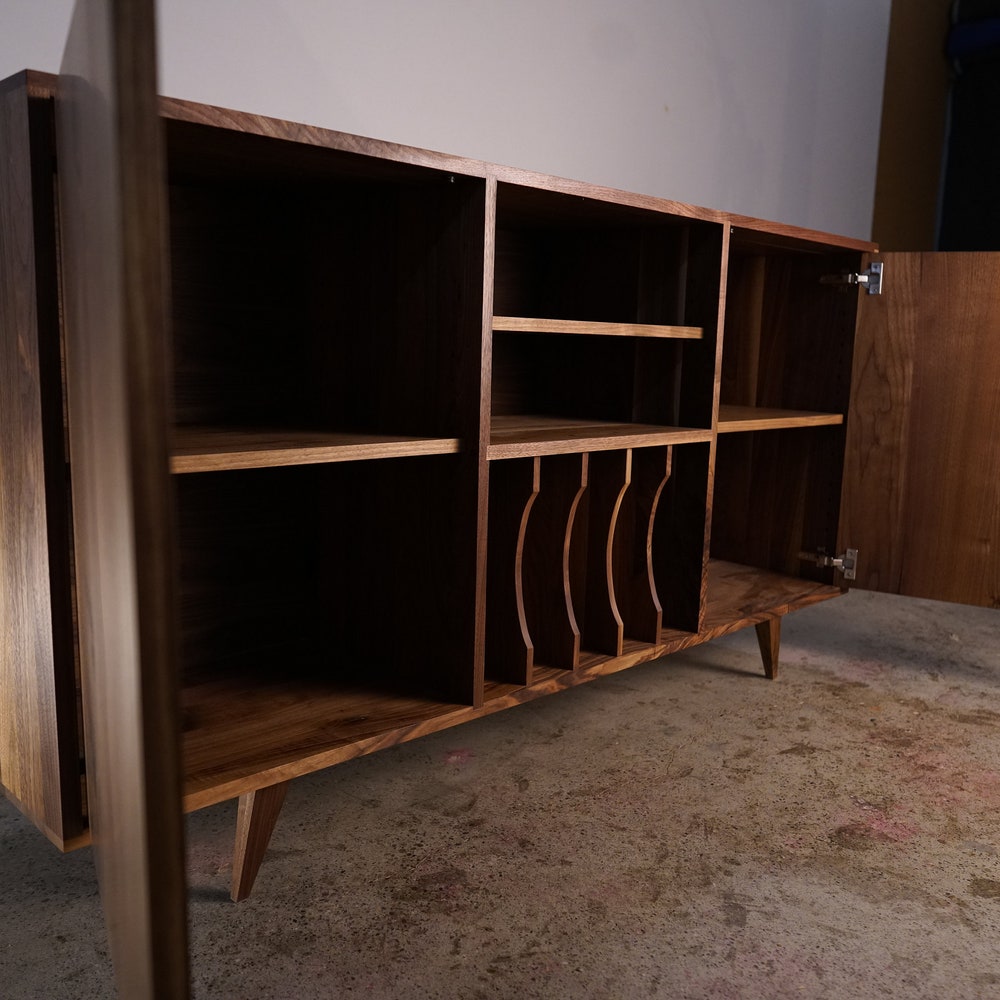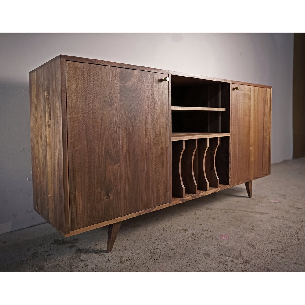 Romo Vinyl Console 2.0, Mid Century LP Storage, Modern Record Storage, Vinyl Storage Sideboard (Shown in Walnut)