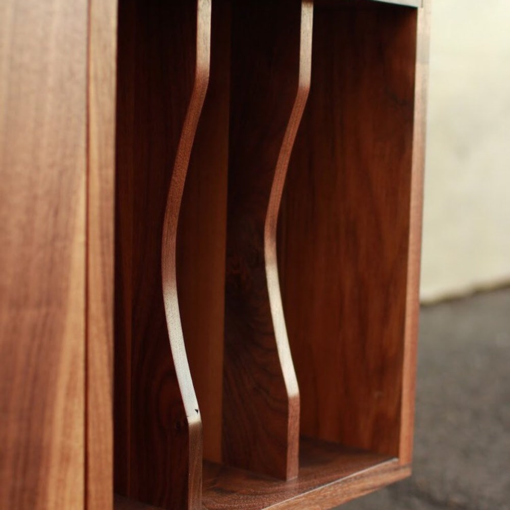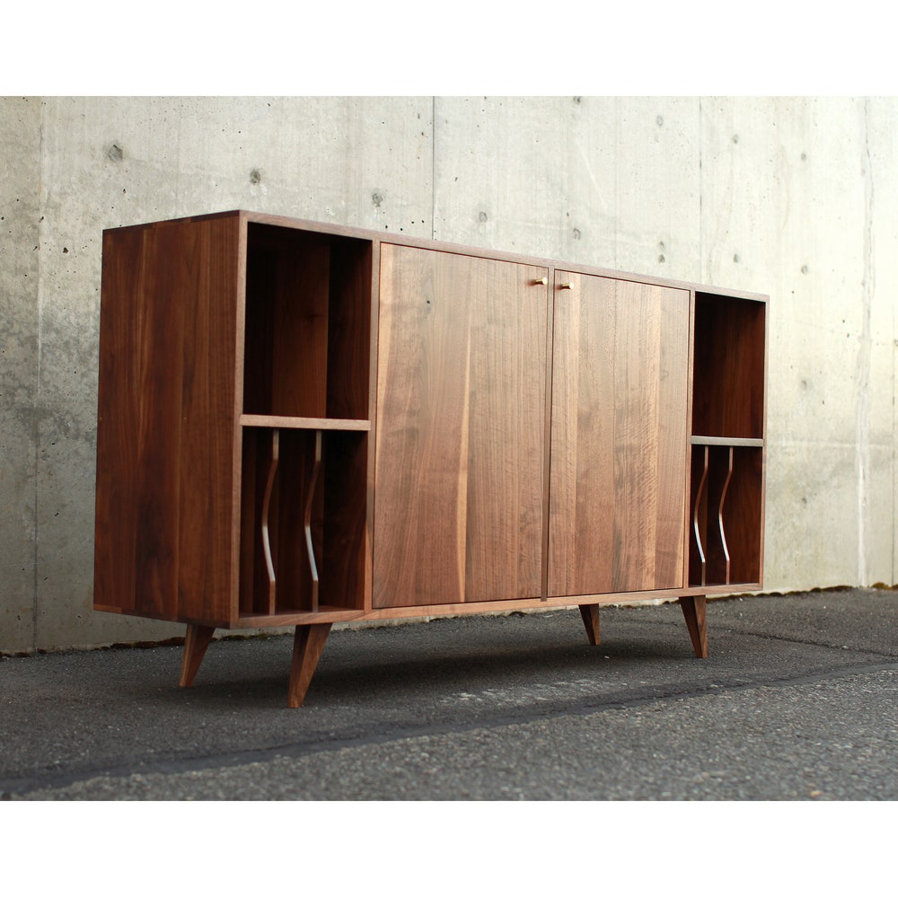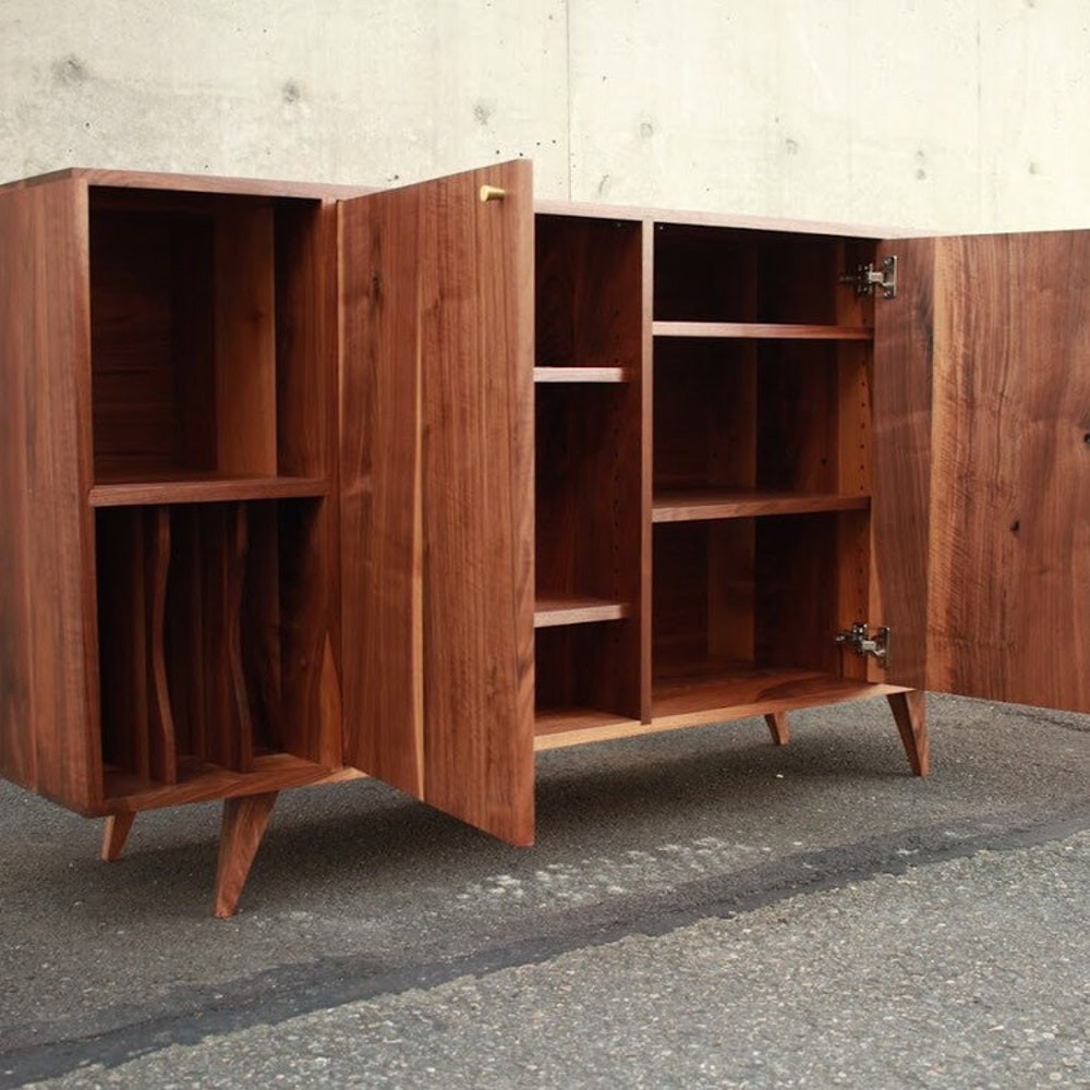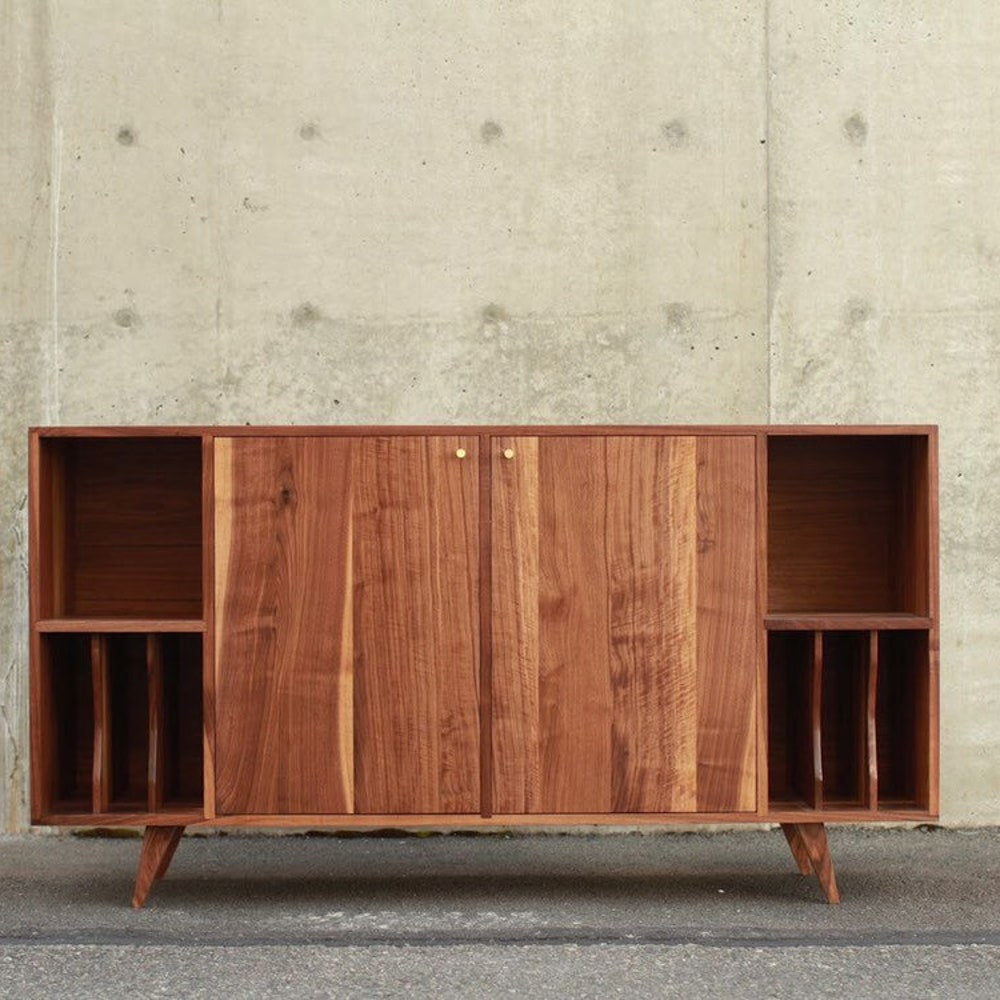Romo Vinyl Console, Mid-Century Modern LP Storage, Modern Sideboard, Solid Wood Record Storage (Shown in Walnut)