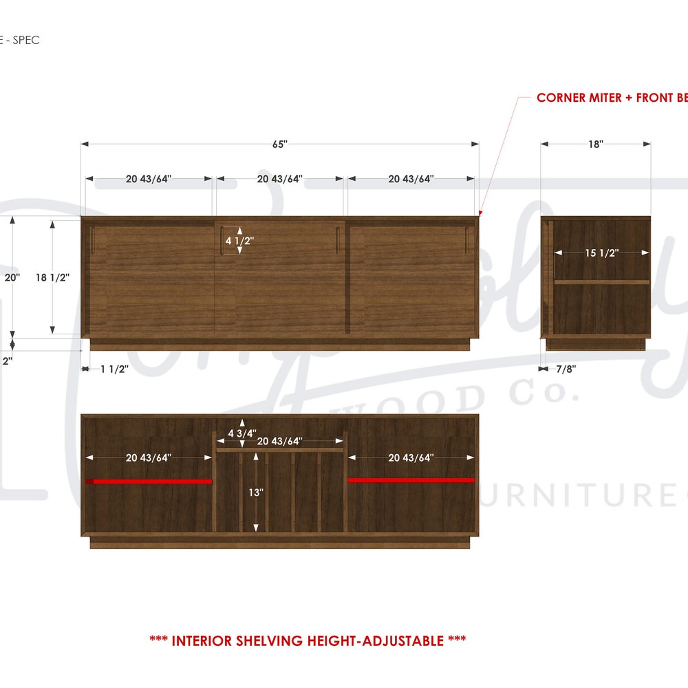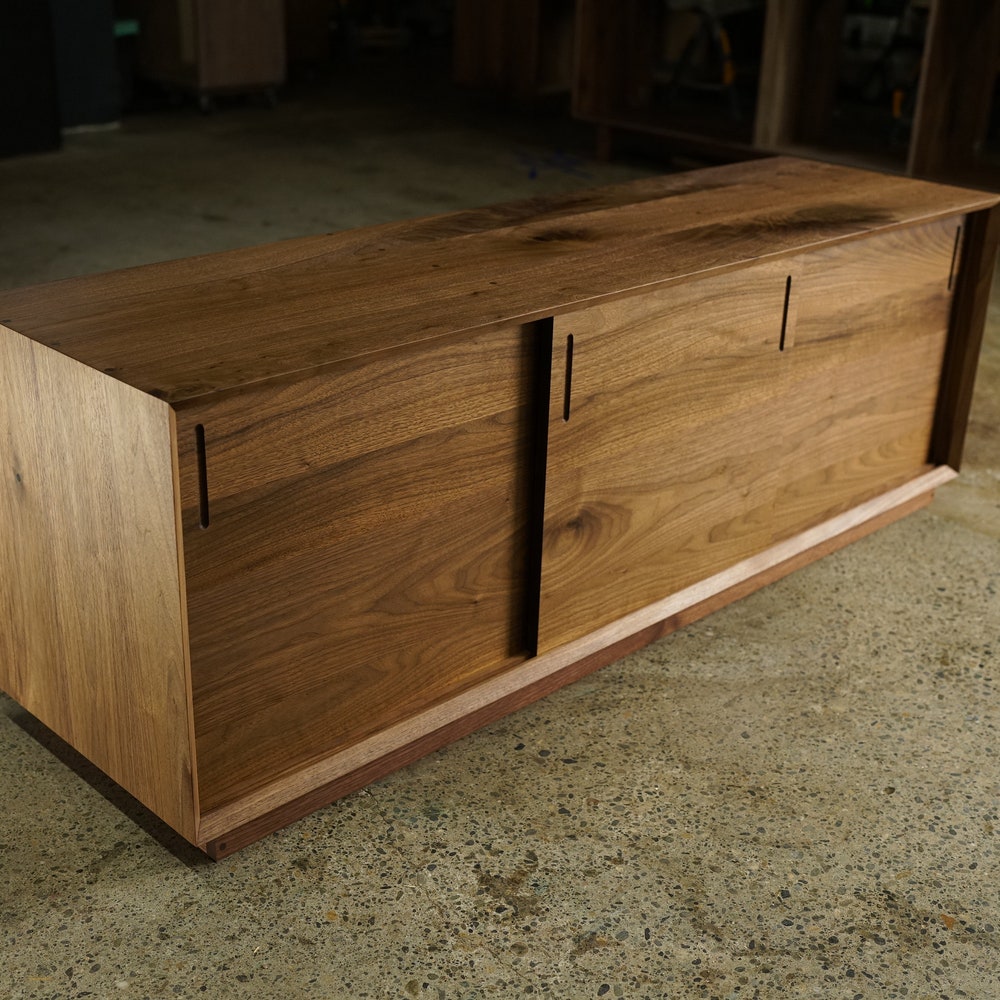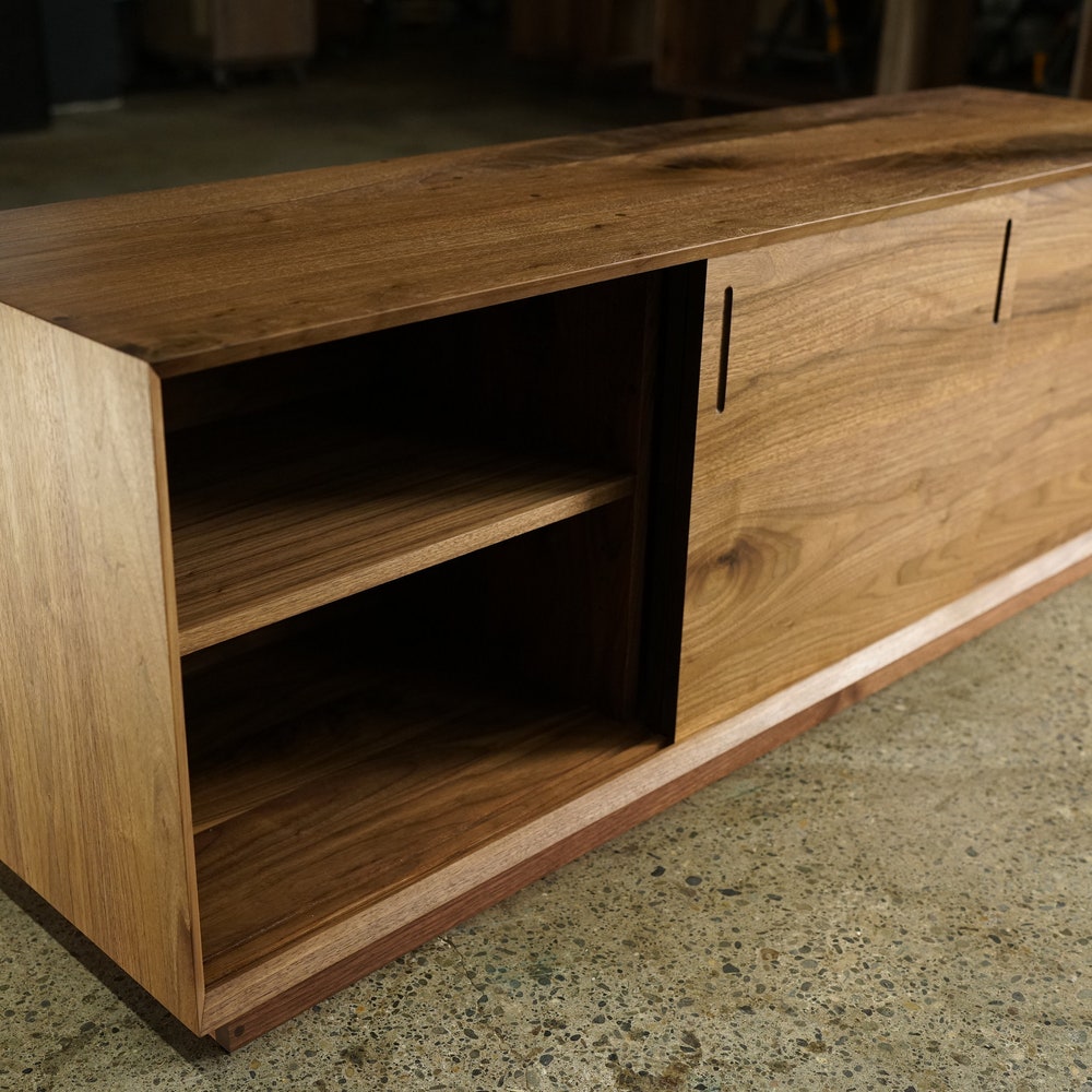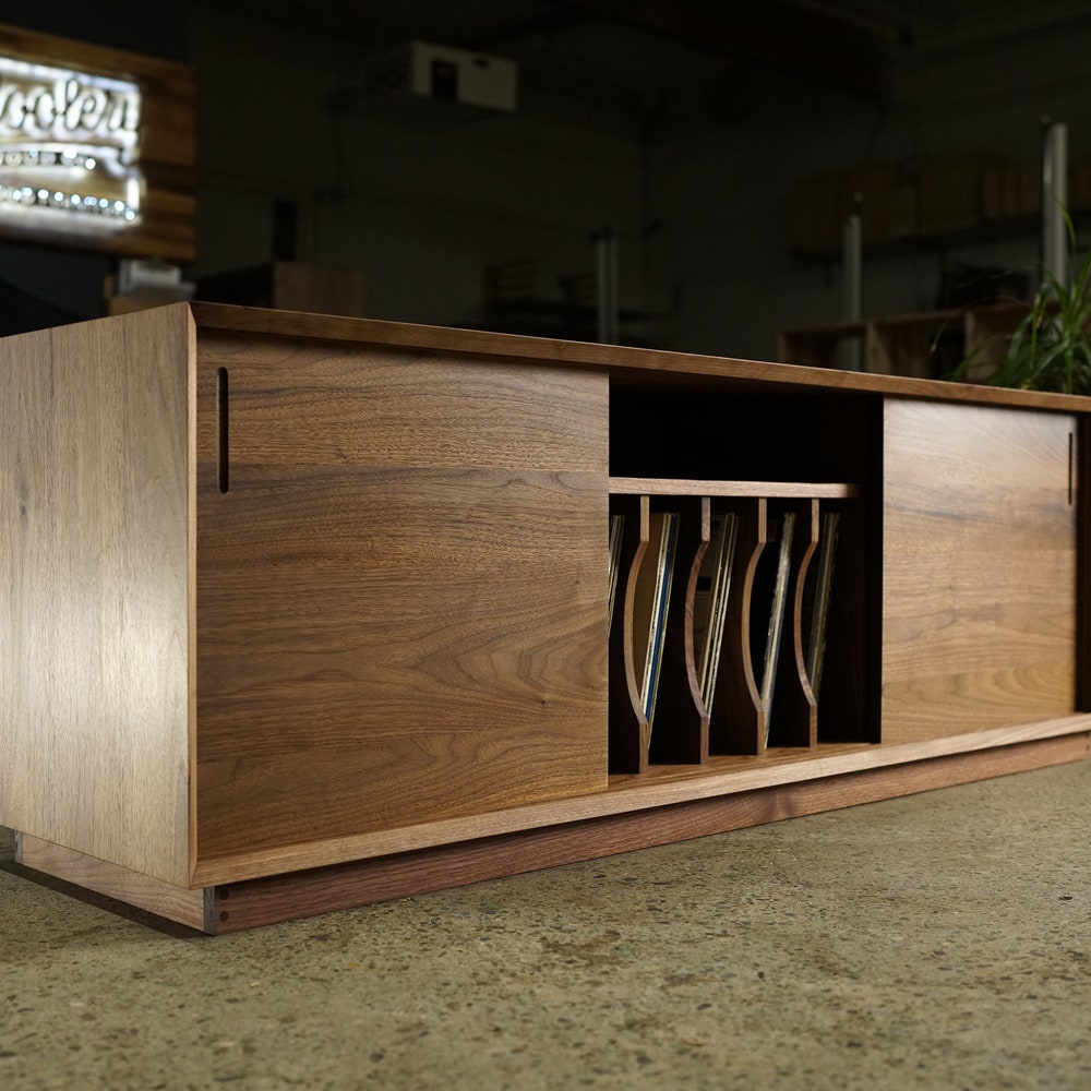 Saylor Console, 65″W, Modern Vinyl LP Storage, Record Console, Modern Solid Wood Credenza, Modern Sideboard (Shown in Walnut)