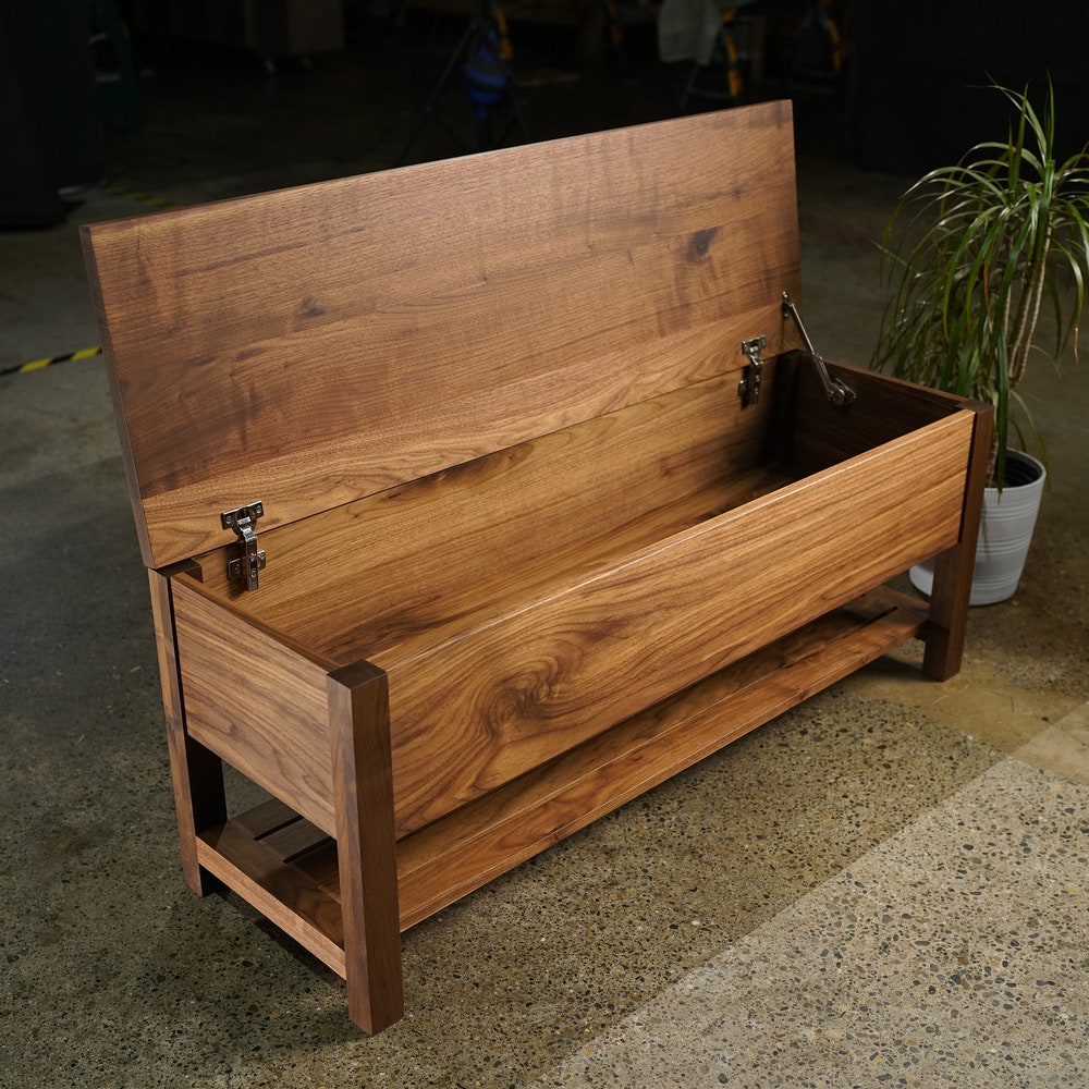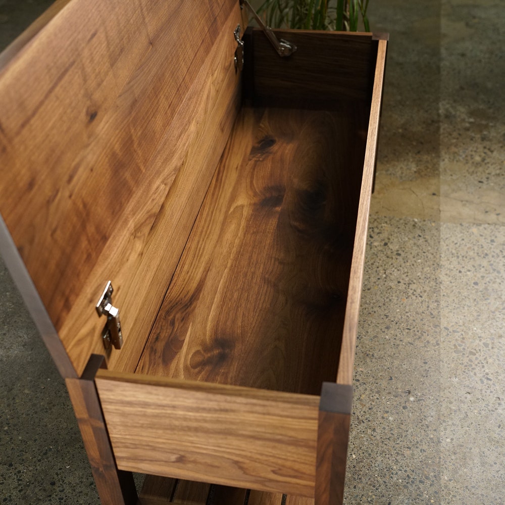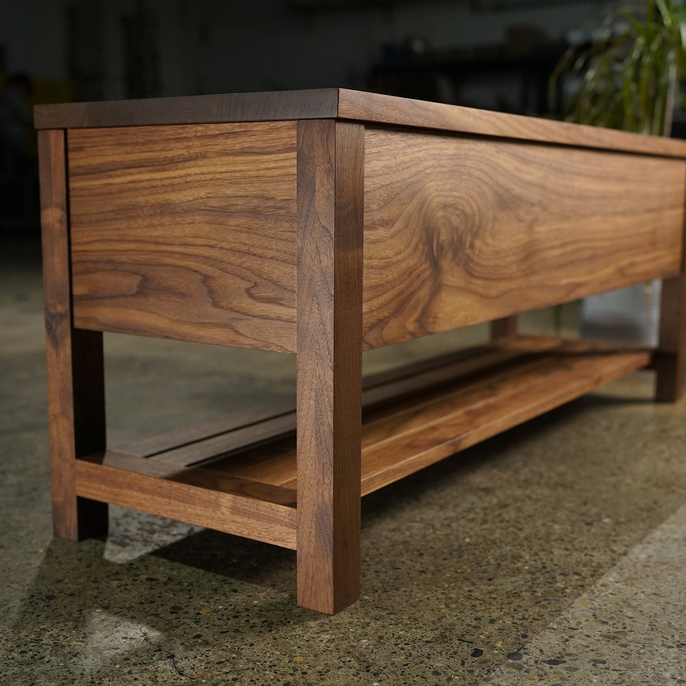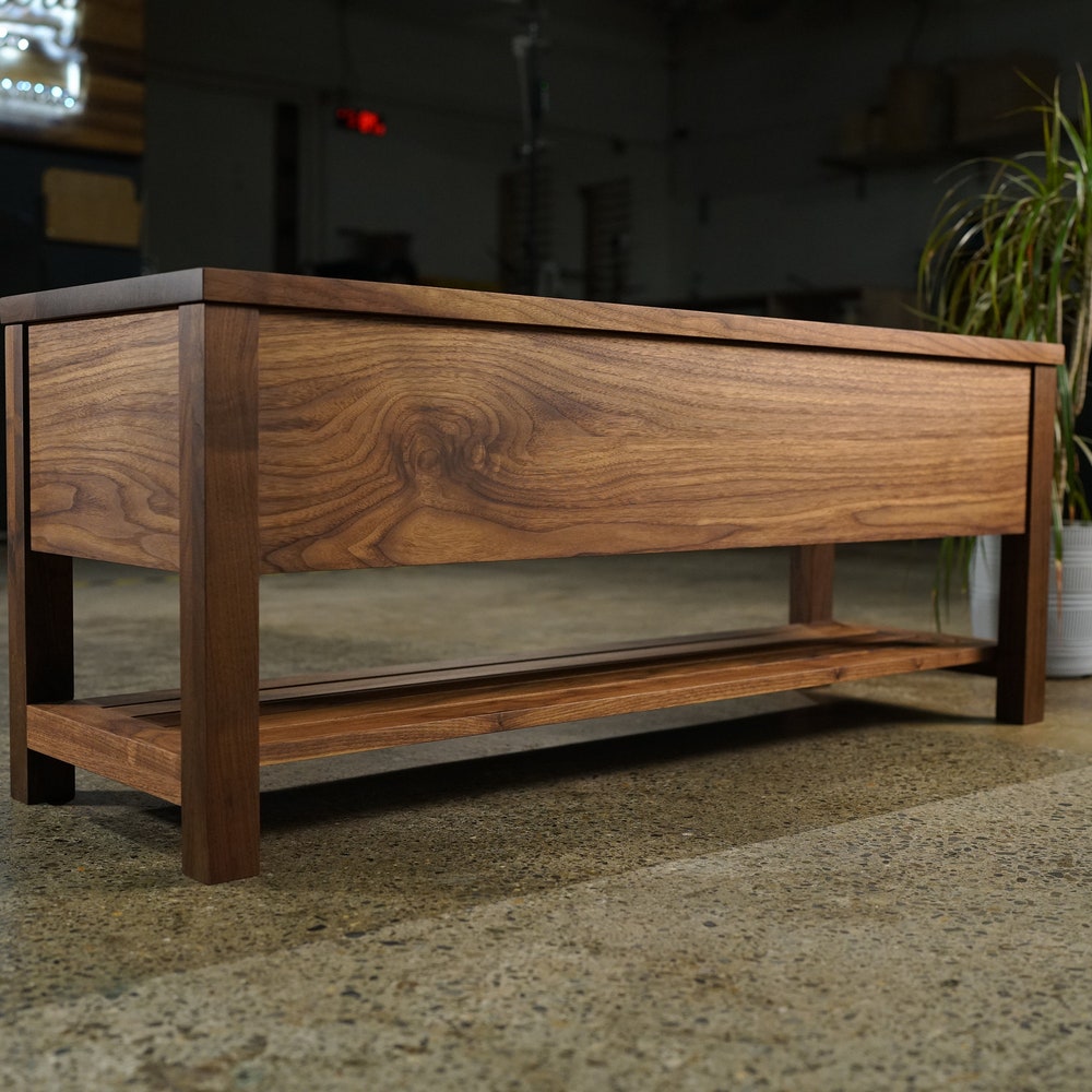 Venkat Trunk Bench, Modern Storage Bench, Handcrafted Woodwork Bench (Shown in Walnut)