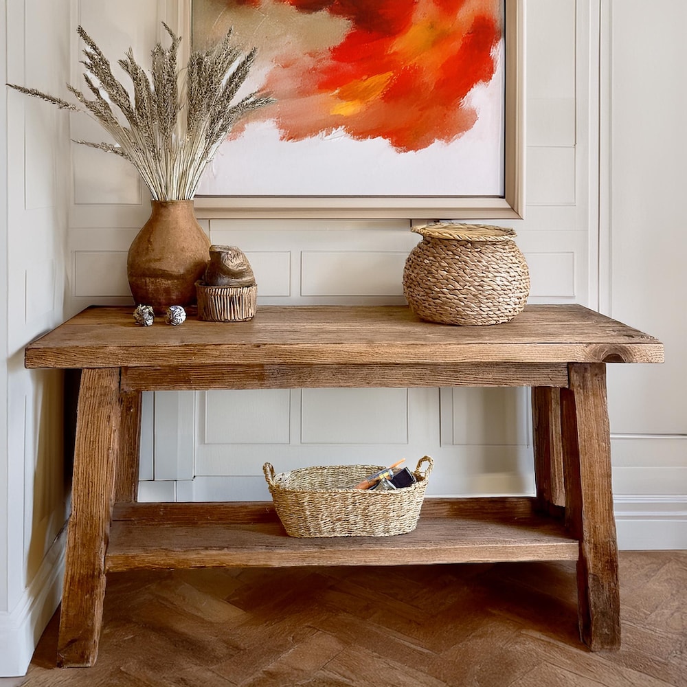 Elevate your home with our Handcrafted Rustic Woodconsole table.